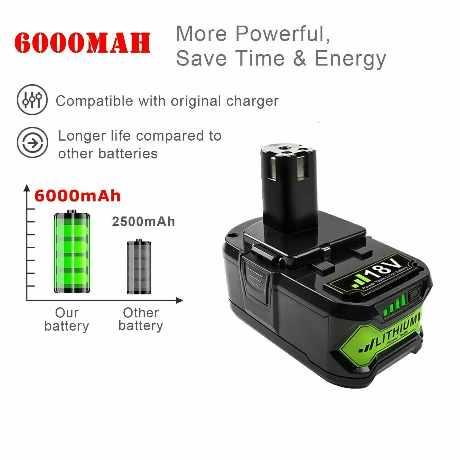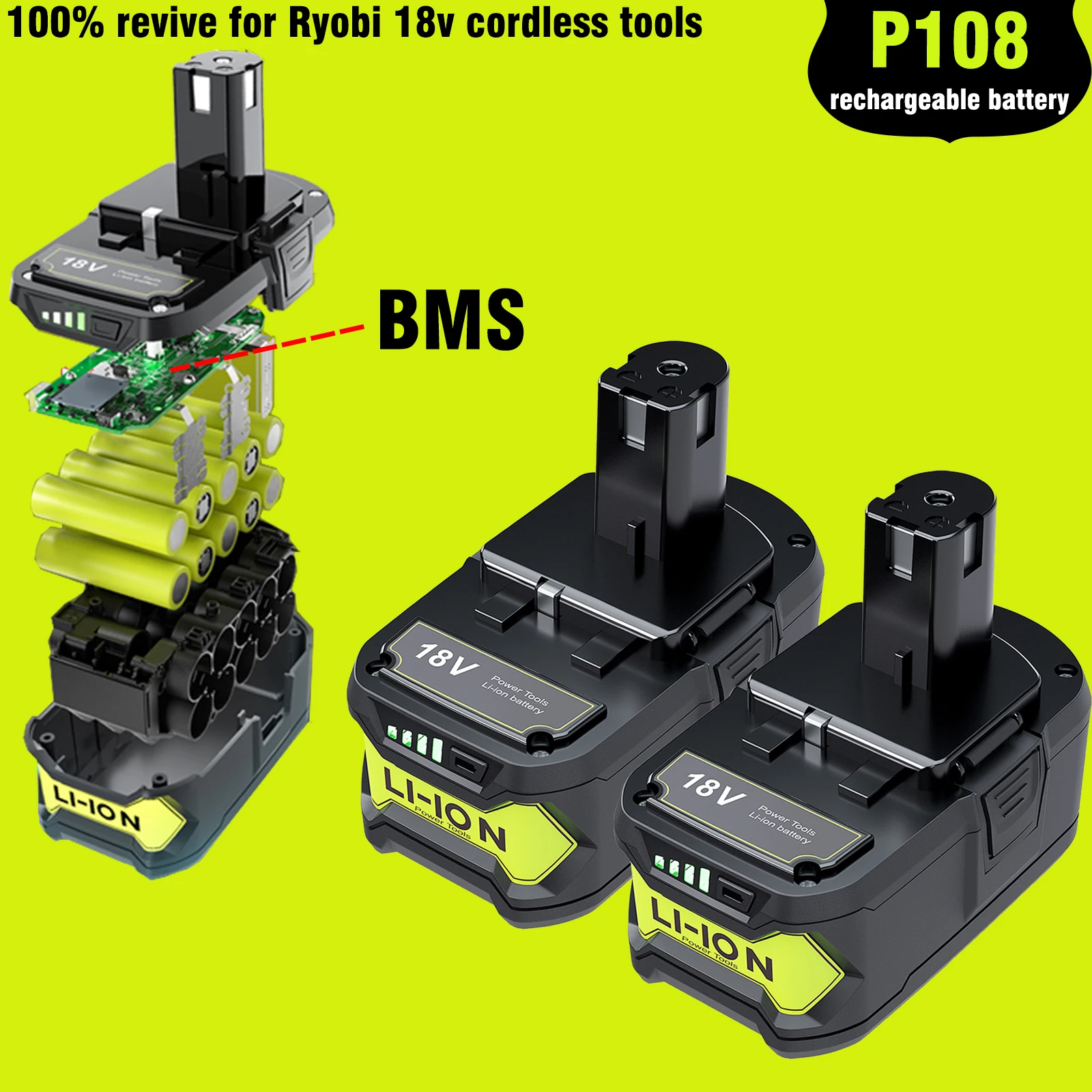 🔋بطارية ليثيوم ريوبي 18 فولت: BPL-1815 ، BPL-1820G ، BPL18151 ، BPL1820 ، P102 ، P103 ، P104 ، P105 ، P106 ، P107 ، P108 ، P109 ، P122 ، P161 ، P162 ، P164 ، P189 ، p190, P191, P192, P193, P194, P197