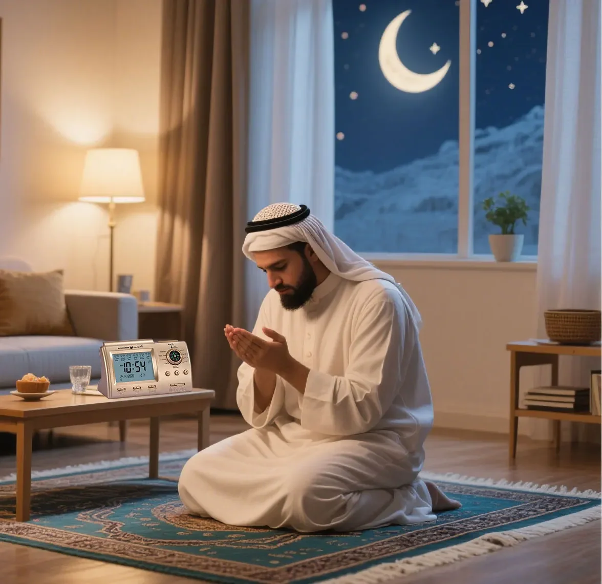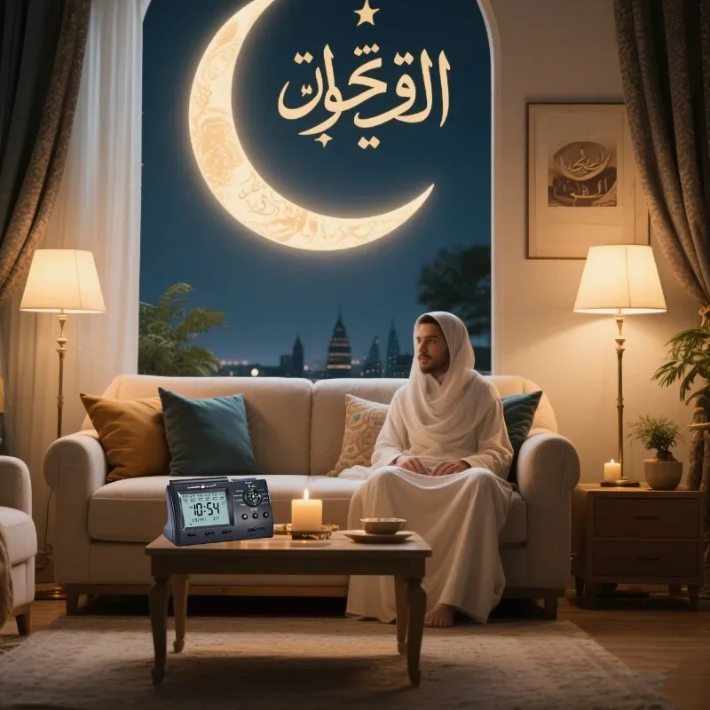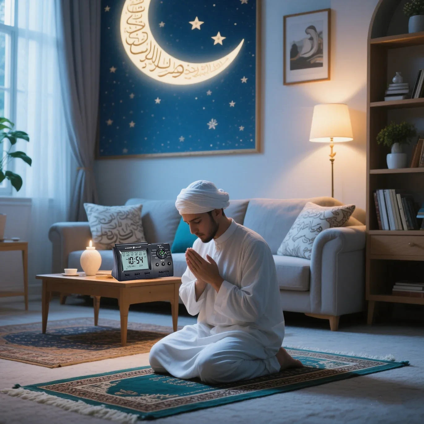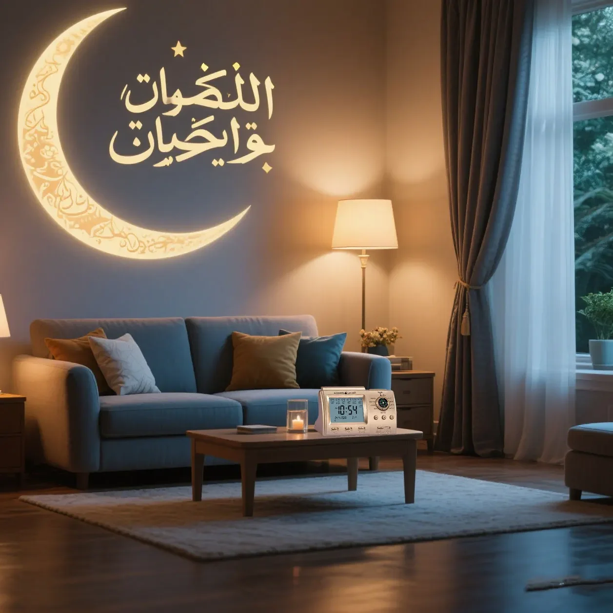 أذان المنبه ساعة هدية درجة الحرارة مسلم الوقت الإسلامي ساعة الطاولة مصباح ليد التقويمات للصلاة القبلة اتجاه عرض درجة الحرارة المميزات :