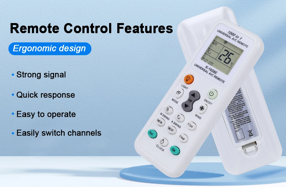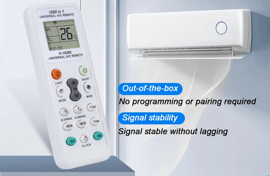 مكيف هواء عالمي K-1028E LCD A/C جهاز تحكم عن بعد لـ LG Panasonic Sharp Samsung Fujitsu Haier Hemilton Hicon