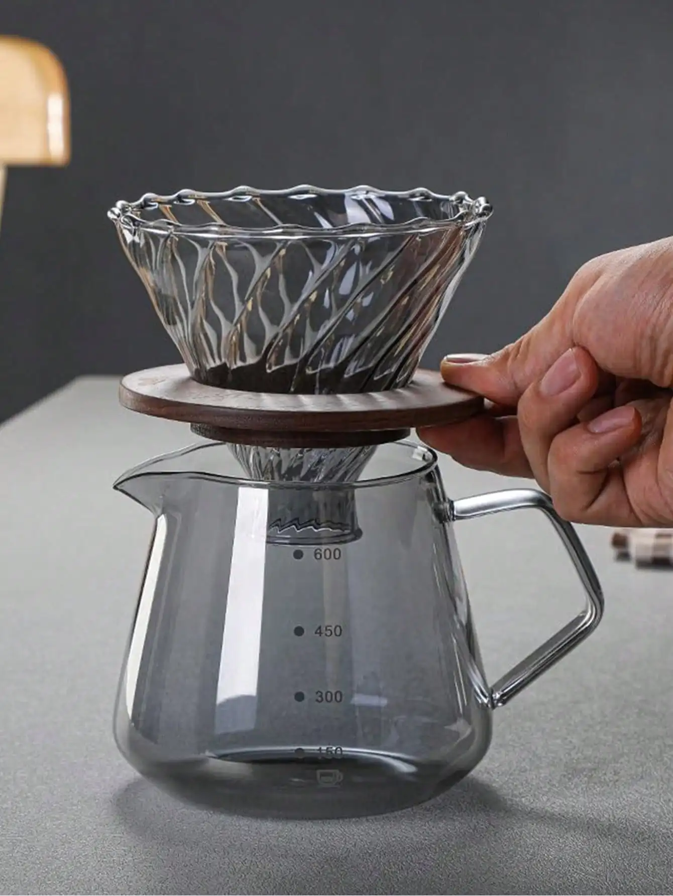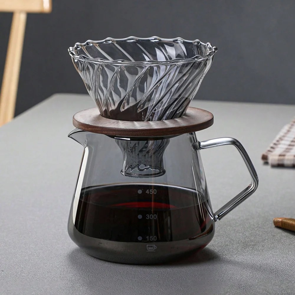ماكينة صنع القهوة 600 مل 2-4 أكواب خادم قهوة زجاجي مع صينية خشبية أصلية
