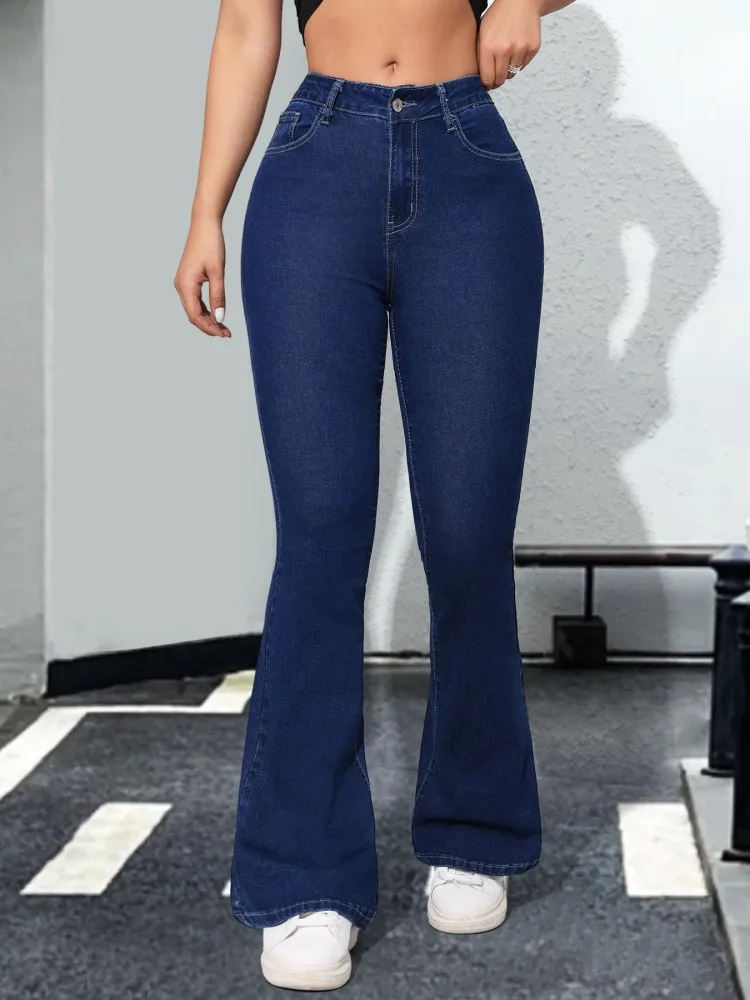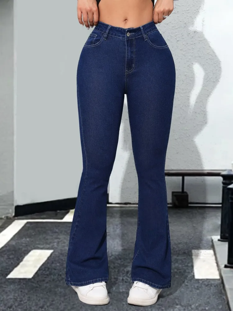 جينز متوهج بقصة ضيقة ومطاطة عصرية باللون الأزرق الداكن