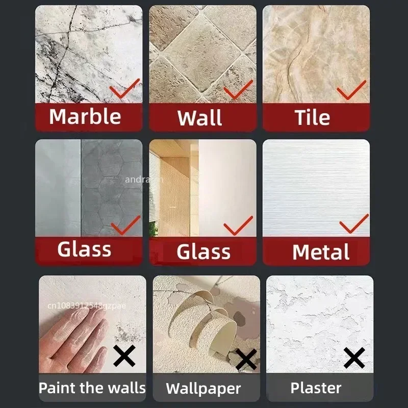 <<الأسطح القابلة للتطبيق: مناسبة للبلاط أو المعدن أو الخشب أو الرخام أو الأسطح الزجاجية أو الأسطح الملساء الأخرى.