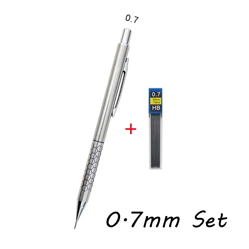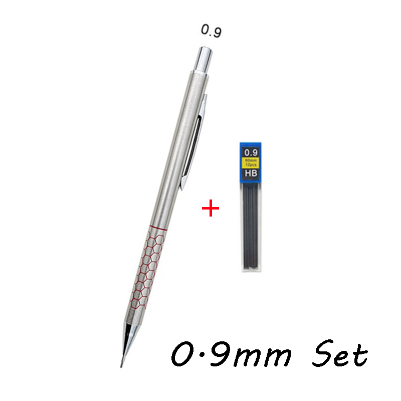 0.5 0.7 0.9 مللي متر قلم رصاص ميكانيكي معدني مع مجموعة ممحاة 2B/HB الرصاص الفن رسم لوازم الرسم قلم رصاص ميكانيكي الكتابة القرطاسية