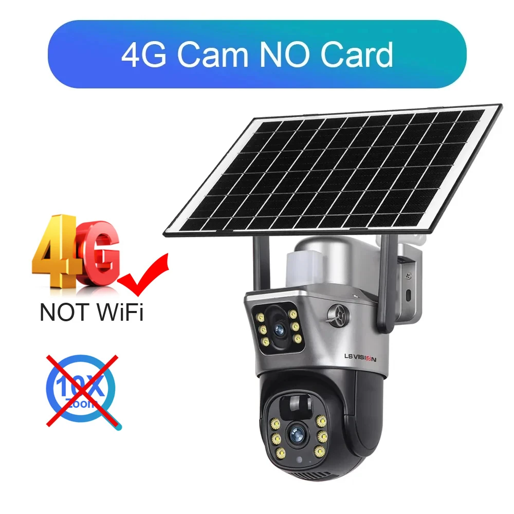 LS VISION 12MP 10X Zoom 4G SIM كاميرا تعمل بالطاقة الشمسية 6K ثلاثة عدسات خارجية تعمل بالطاقة الشمسية IP كامارا PIR كشف الإنسان CCTV PTZ Cam V380