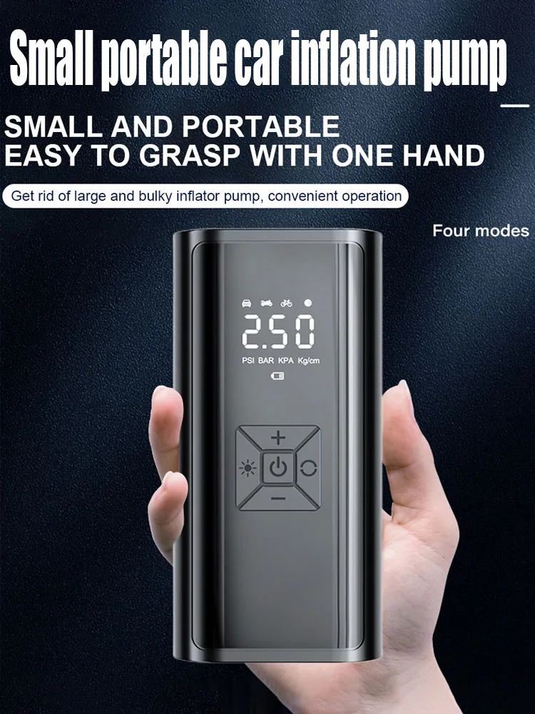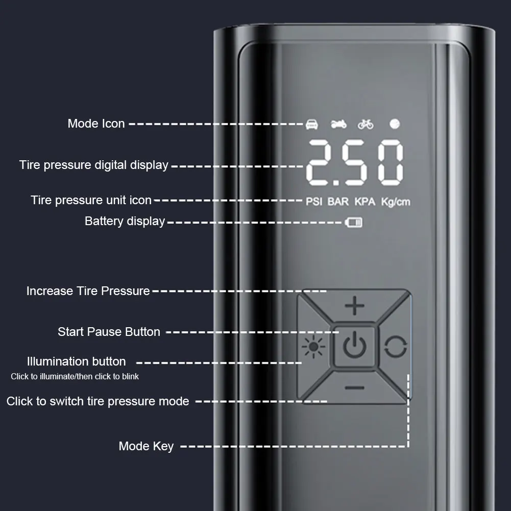 مضخة هواء رقمية مع ضوء LED منفاخ إطارات لاسلكي ضاغط هواء محمول قياس ضغط الإطارات شاشة الكريستال السائل 150PSI 120 واط