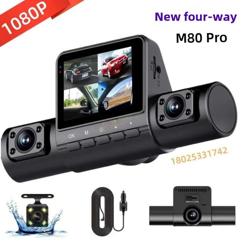 M80 Pro 3-قناة 4-عدسة كاميرا داش السيارة عالية الوضوح 1080P الأشعة تحت الحمراء للرؤية الليلية مراقبة وقوف السيارات