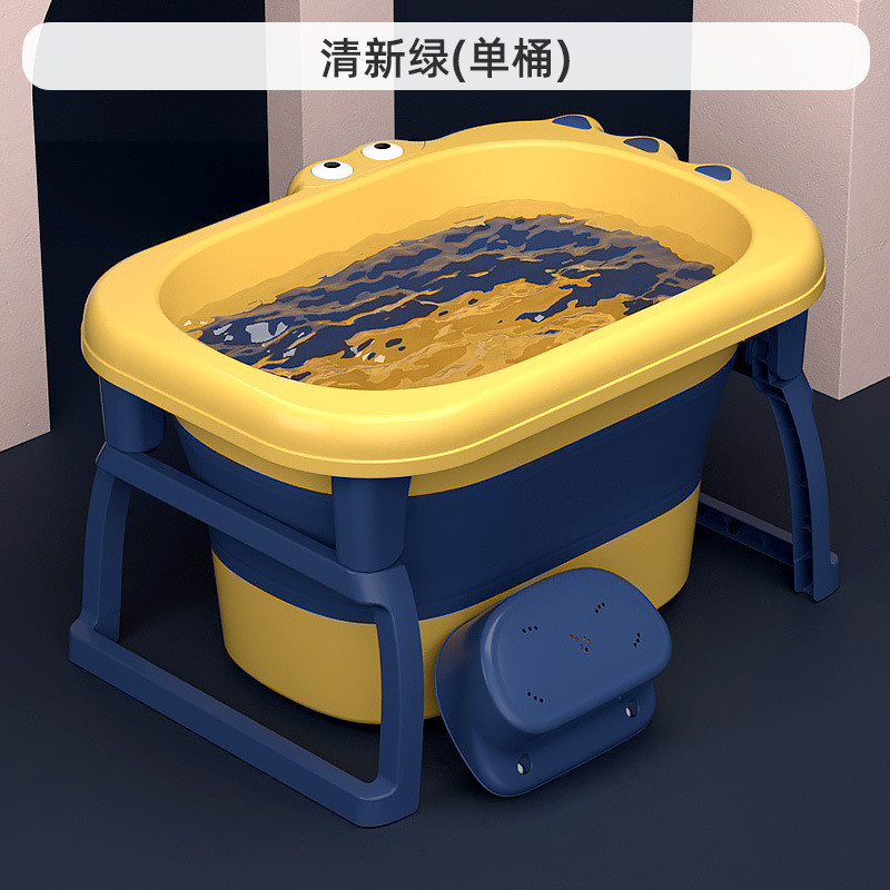 حوض استحمام للأطفال قابل للطي على شكل تمساح مع مخرج لتصريف المياه أصفر