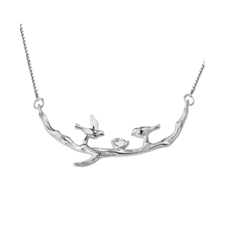 سلسال العصافير فضة 925 مصنوع يدوياً مطلي بالروديوم