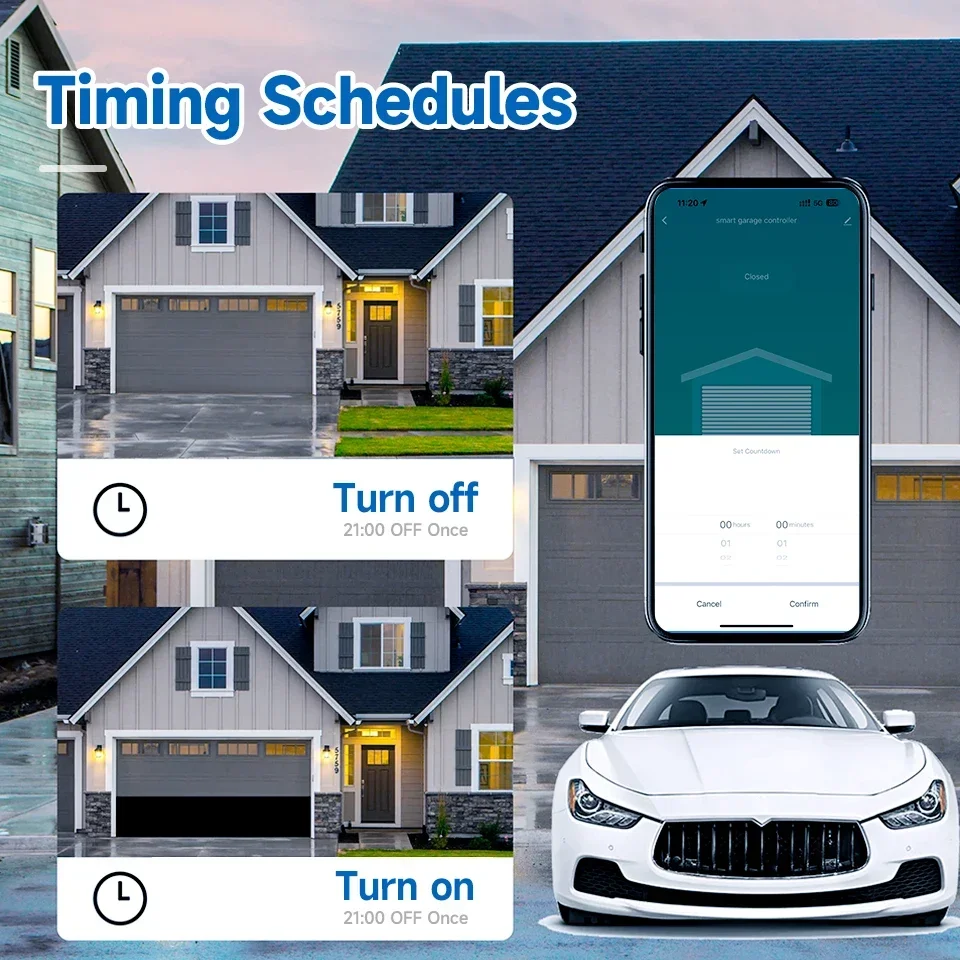 وظيفة المؤقت: يمكنك ضبط الأوقات لفتح وإغلاق المرآب الخاص بك