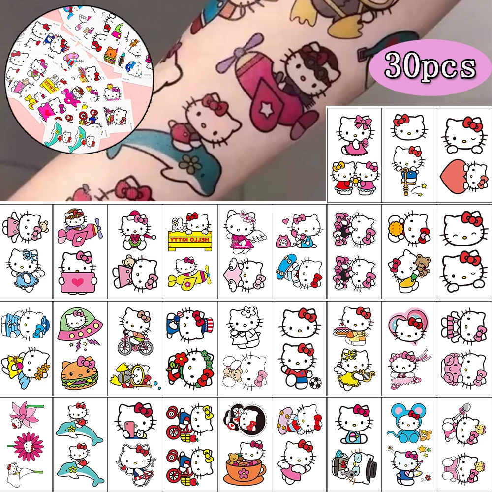 30 قطعة/المجموعة سانريو مرحبا كيتي المؤقتة الوشم ملصقات لطيف Kawaii أنيمي KT القط مقاوم للماء الوشم ملصق للأطفال الفتيات الهدايا