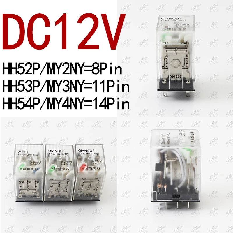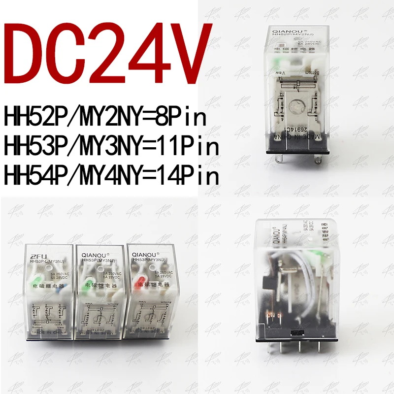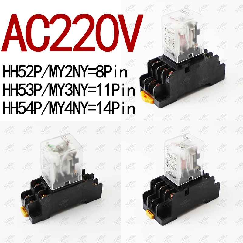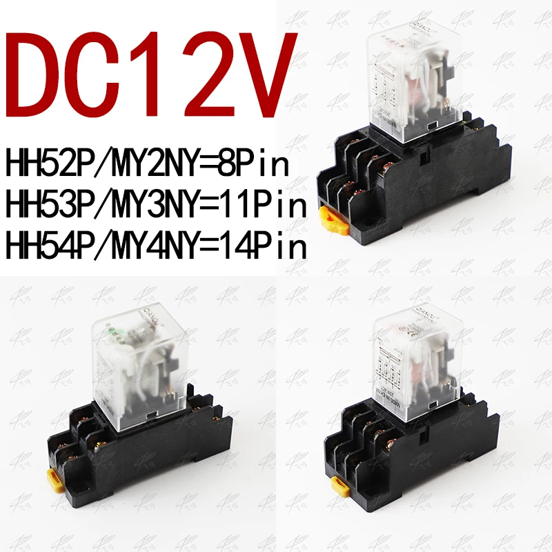 HH52P/HH53P/HH54P MY4NJ المكونات في التتابع PYF14A 12 فولت 24 فولت 36 فولت 48 فولت 110 فولت 220 فولت تيار مستمر/التيار المتناوب 5A الفضة الاتصال 14 دبابيس 4PDT rele المقبس
