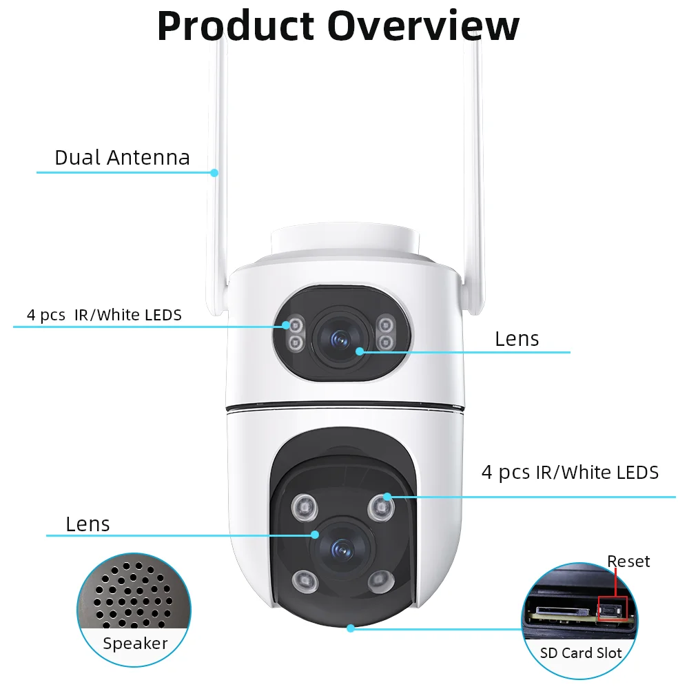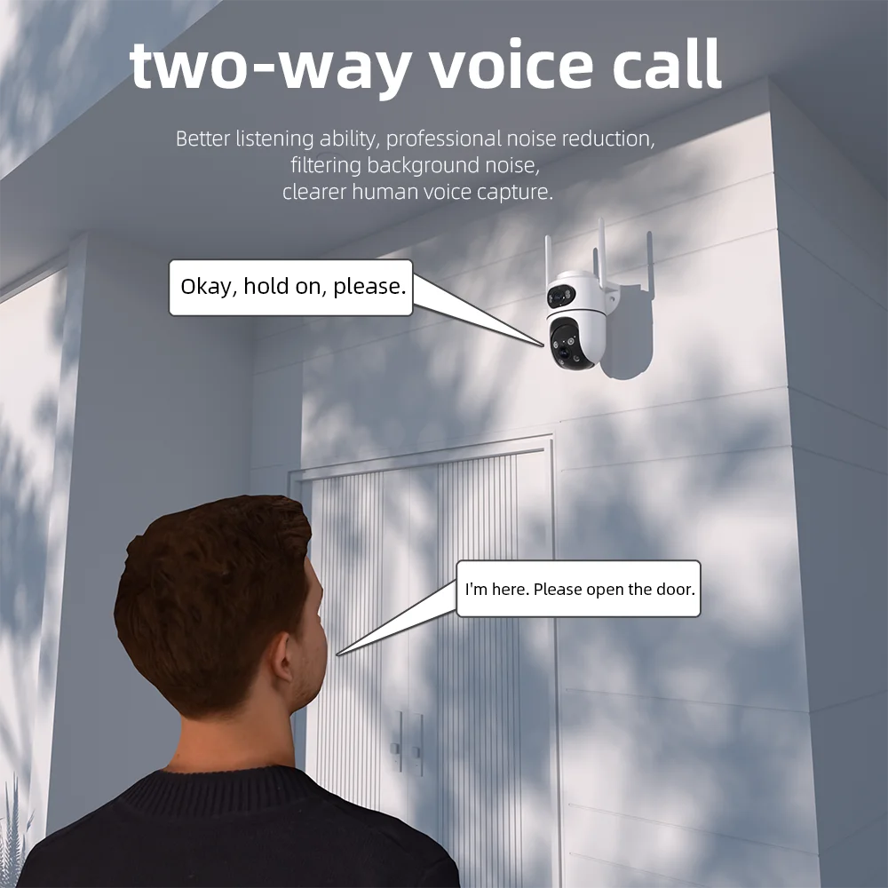 عدسة مزدوجة مع كاميرا PTZ WIFI للتتبع التلقائي بشاشة مزدوجة عدسة مزدوجة، شاشة مزدوجة، منبه للإشعارات، تتبع الإنسان، مراقبة الاتصال الداخلي الصوتي ف...