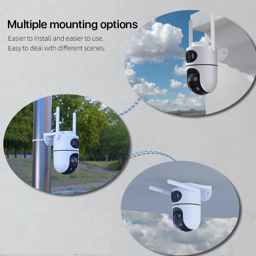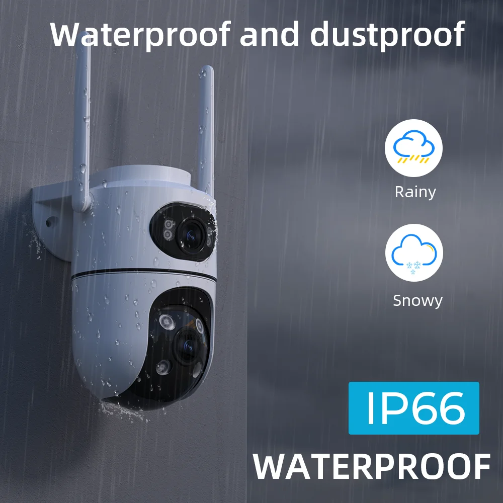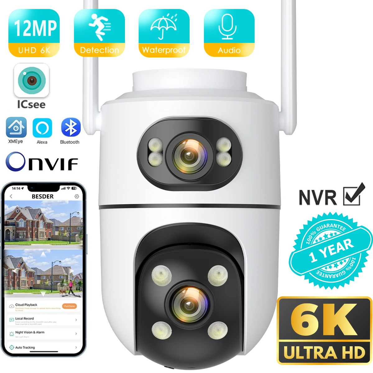 كاميرا IP لاسلكية للأمن الخارجي 6K 12MP HD عدسة مزدوجة خارجية واي فاي كاميرا متحركة تتبع تلقائي كاميرا مراقبة الشوارع iCsee