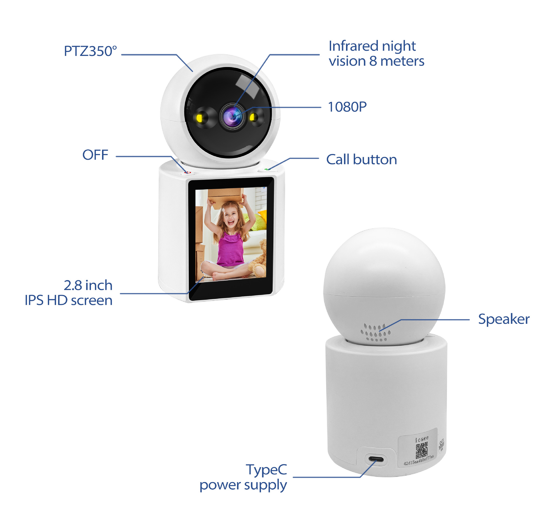 كاميرا مزدوجة الشاشة: مكالمة بنقرة واحدة، كاميرا WiFi بدقة 4K بدقة 6 ميجابكسل مع كشف بشري AI، رؤية ليلية ملونة للمراقبة بالفيديو CCTV