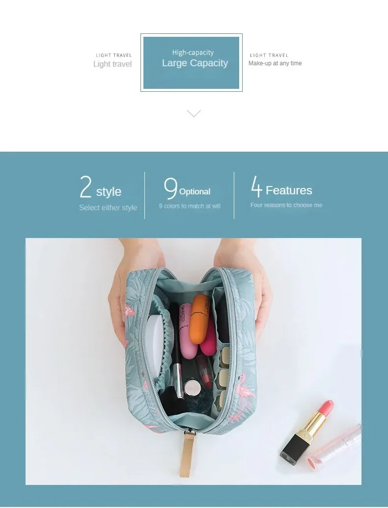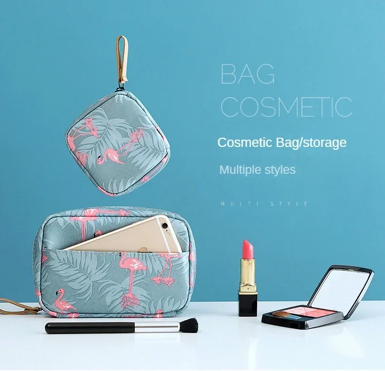 여성용 미니 화장품 가방, 플라밍고 단색 여행 세면 용품 보관 선인장 뷰티 메이크업
