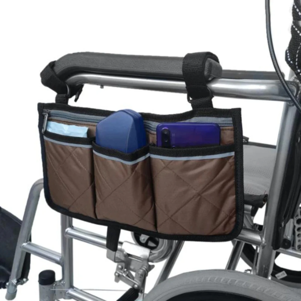 جيب جانبي محمول بمسند ذراع للكرسي المتحرك مناسب لمعظم عجلات المشي وملحقات المعدات المتنقلة