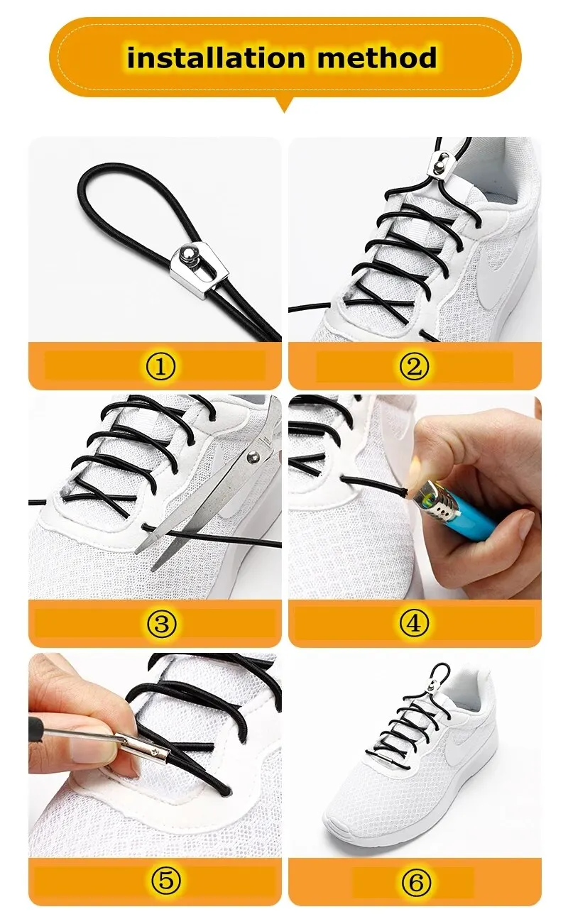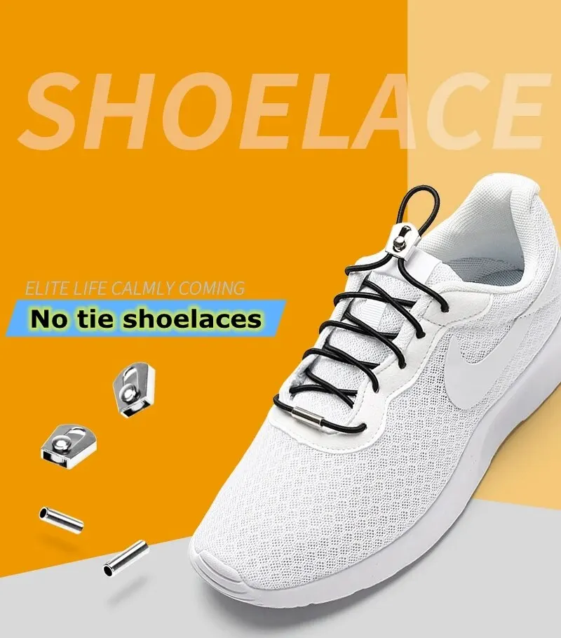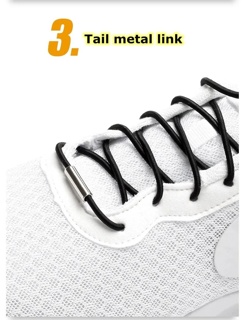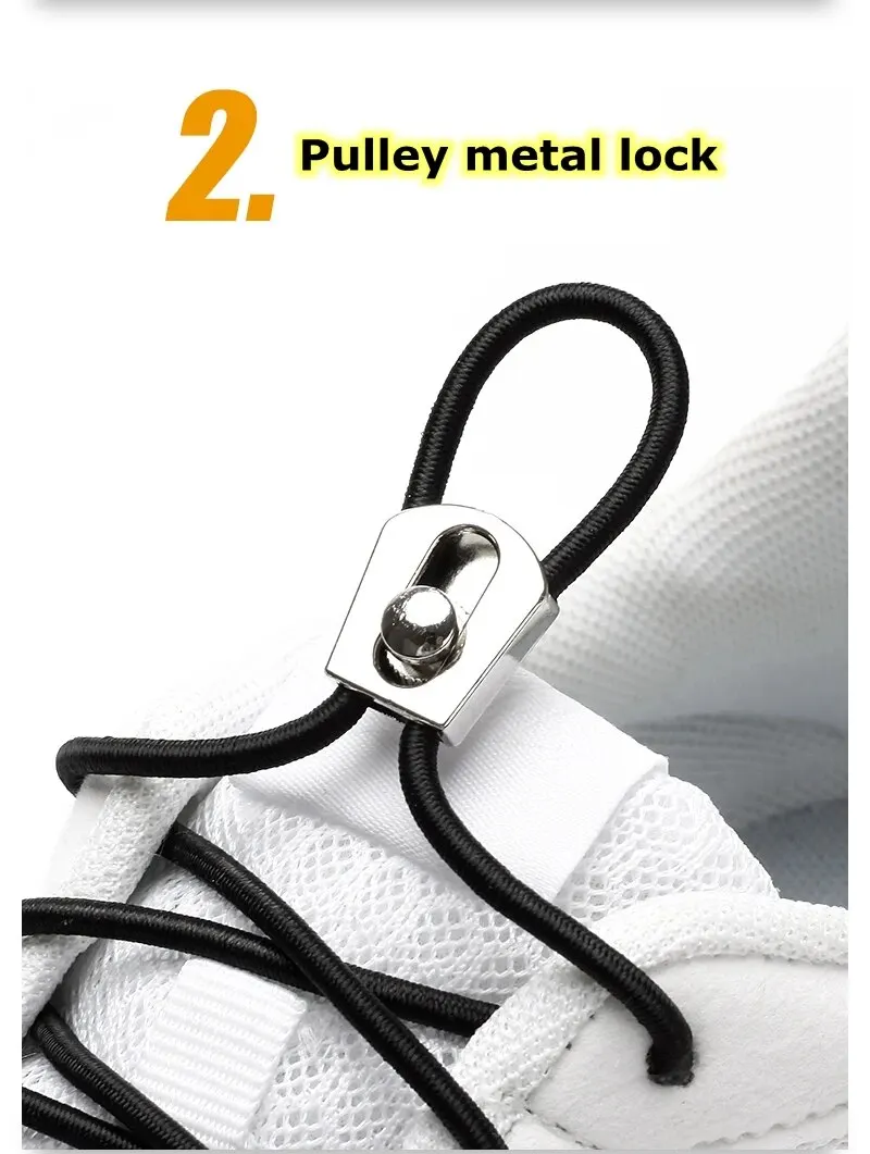 أربطة الحذاء المرنة قفل منزلق معدني عاكس بدون أربطة أحذية مستديرة للأطفال والكبار أثناء الترفيه أحذية رياضية كسول من الدانتيل
