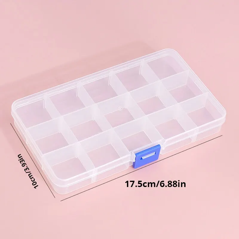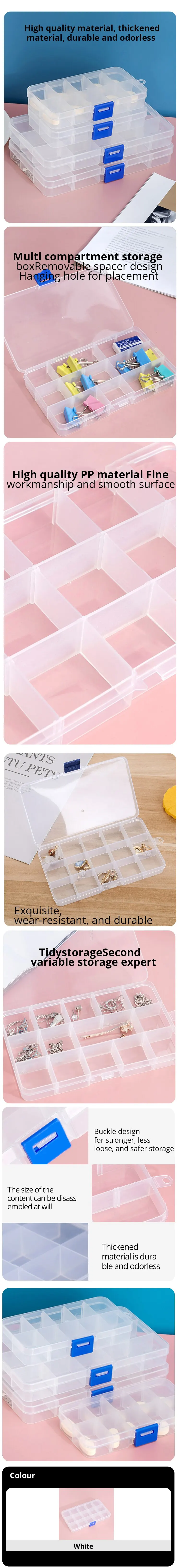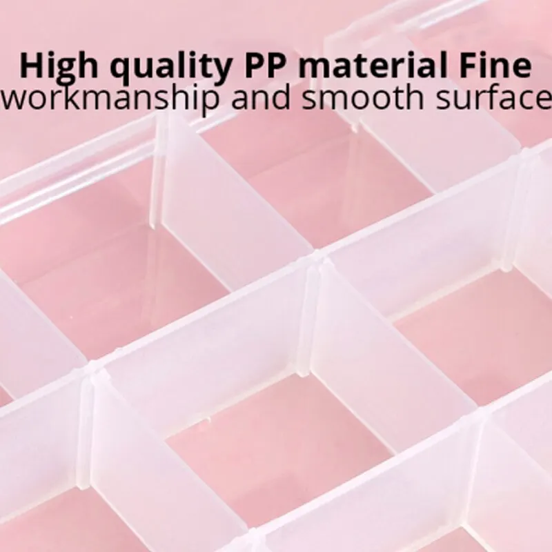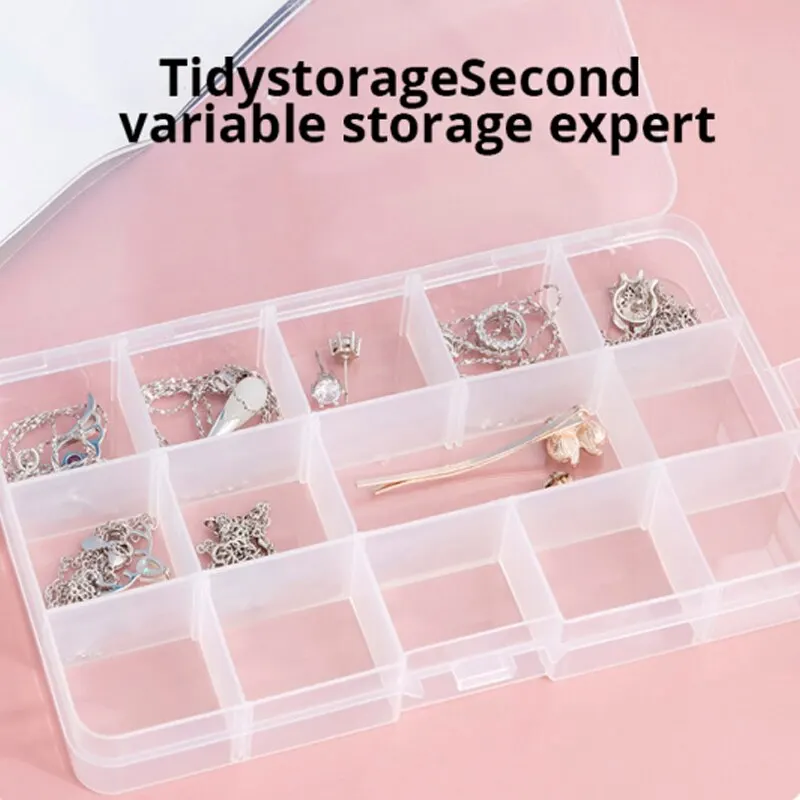 • حجم قابل للتعديل :صندوق المجوهرات البلاستيكي من 15 شبكة يمكن تعديله ليتناسب مع أحجام مختلفة من العناصر ، مما يجعله متعدد الاستخدامات وعملي.