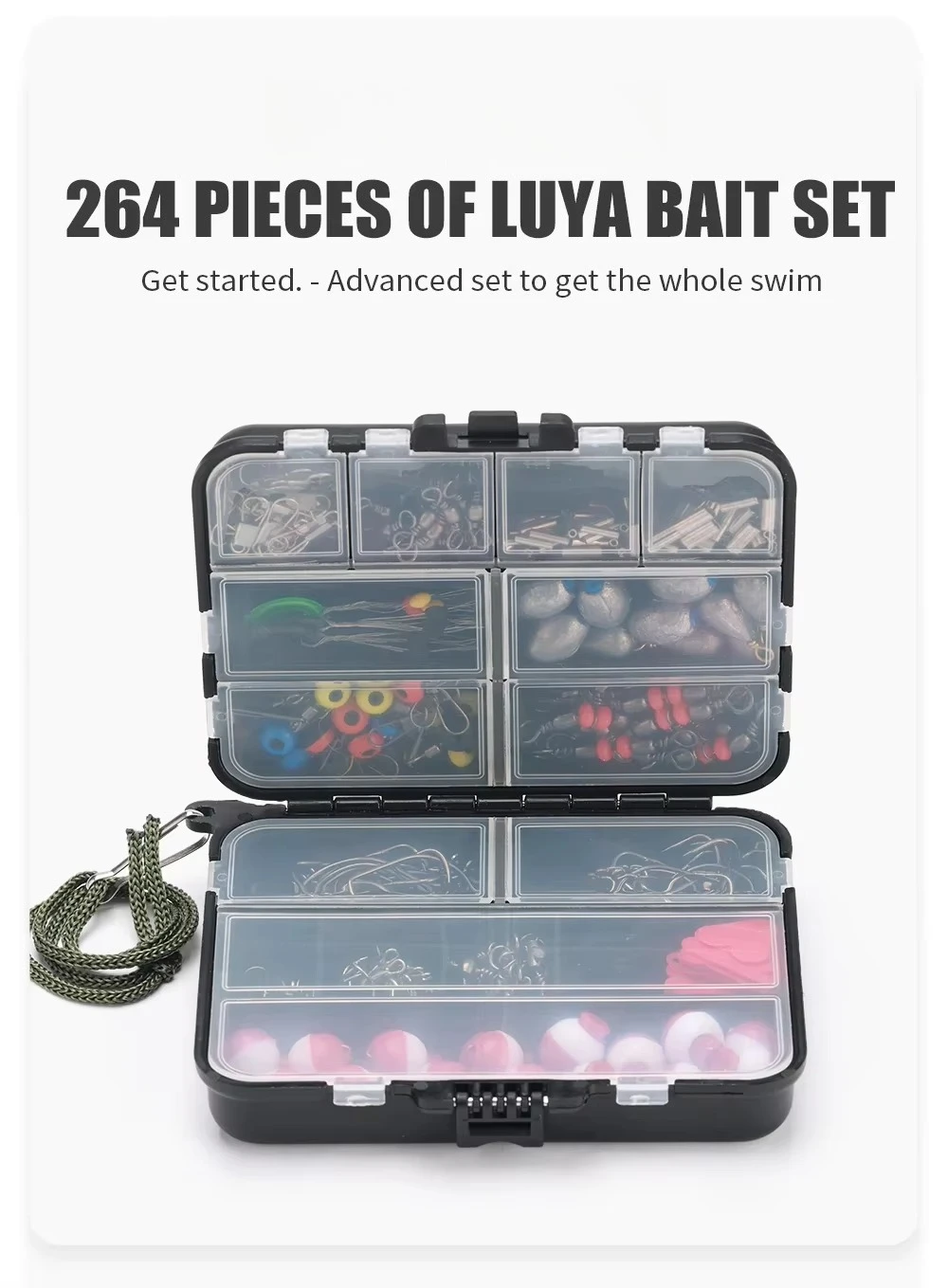 مجموعة ملحقات الصيد 264 قطعة أدوات صيد السمك بما في ذلك خطافات تهزهز يطفو بوبرز طقم صيد الخرز