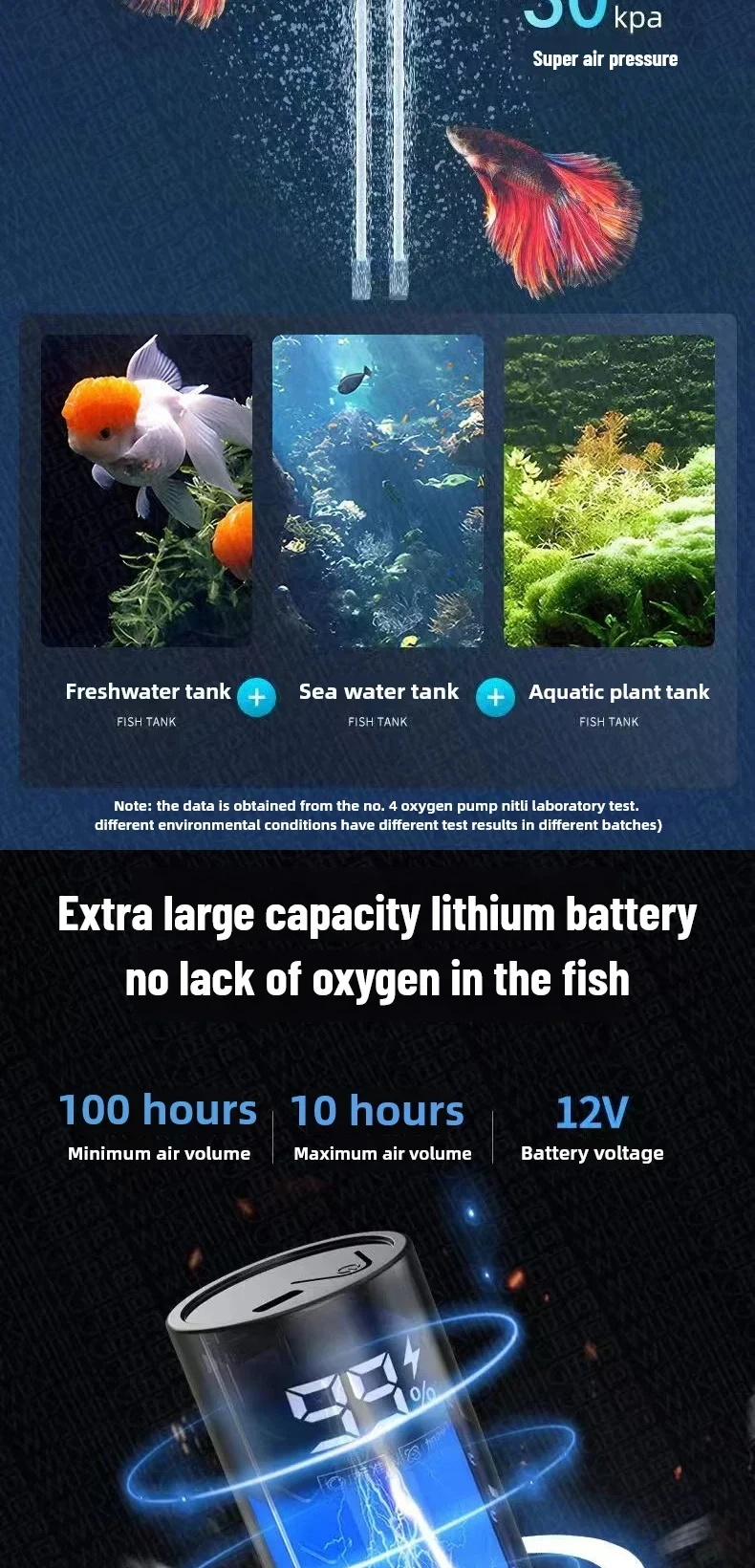 حوض السمك خزان الأسماك مضخة أكسجين شحن ثنائي الغرض مضخة هواء USB بطارية ليثيوم المنزلية المحمولة الصيد كتم 2400ma Outdoo
