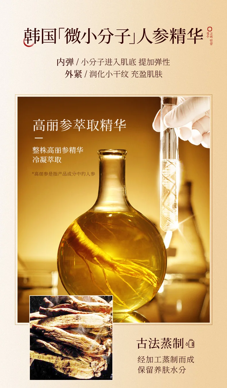 1.خصائص مضادة للشيخوخة: يحتوي الجينسنغ الكوري على مضادات الأكسدة التي تساعد على حماية البشرة من أضرار الجذور الحرة، والتي يمكن أن تقلل من علامات الشيخوخة مثل التجاعيد والخطوط الدقيقة.