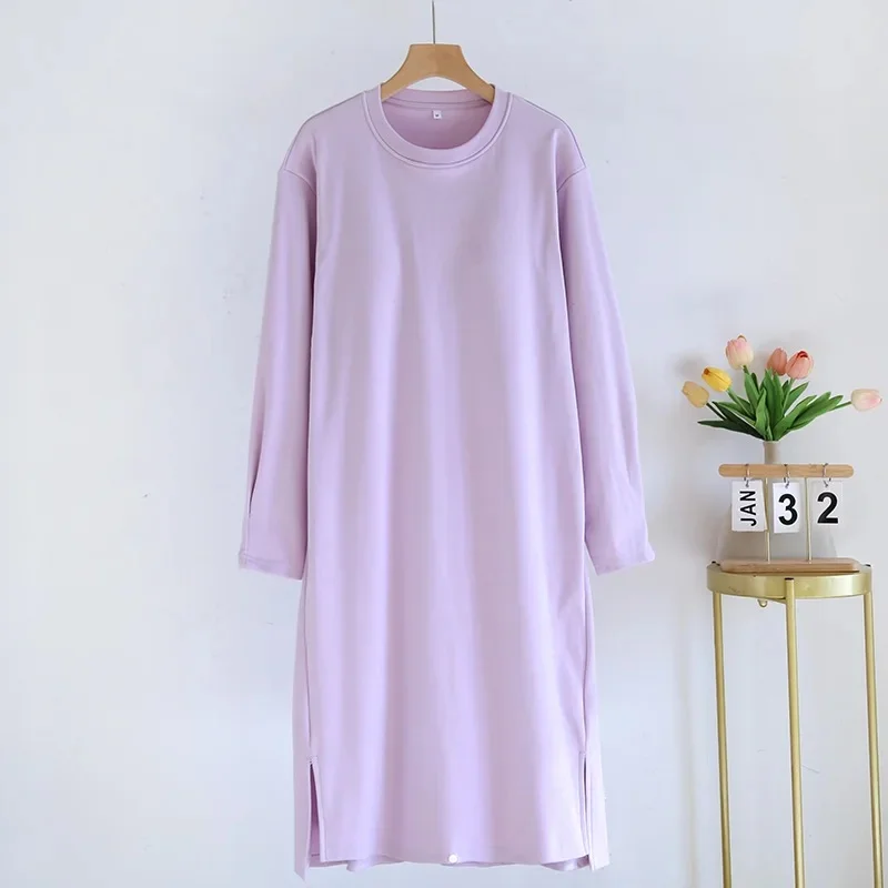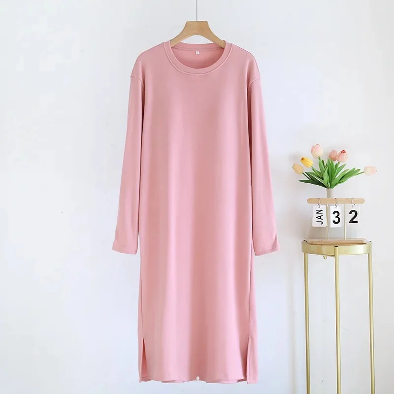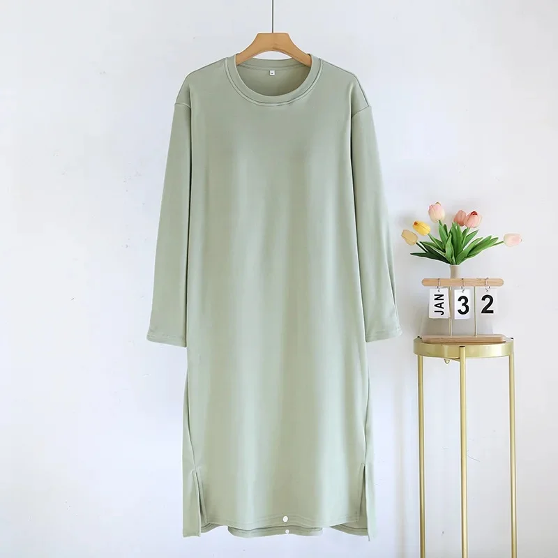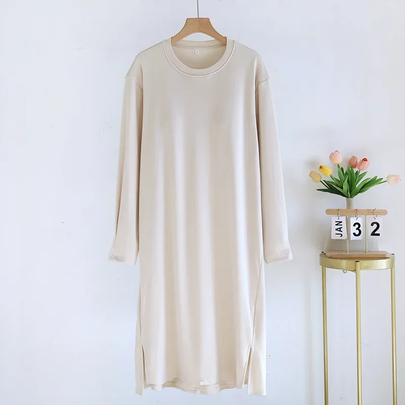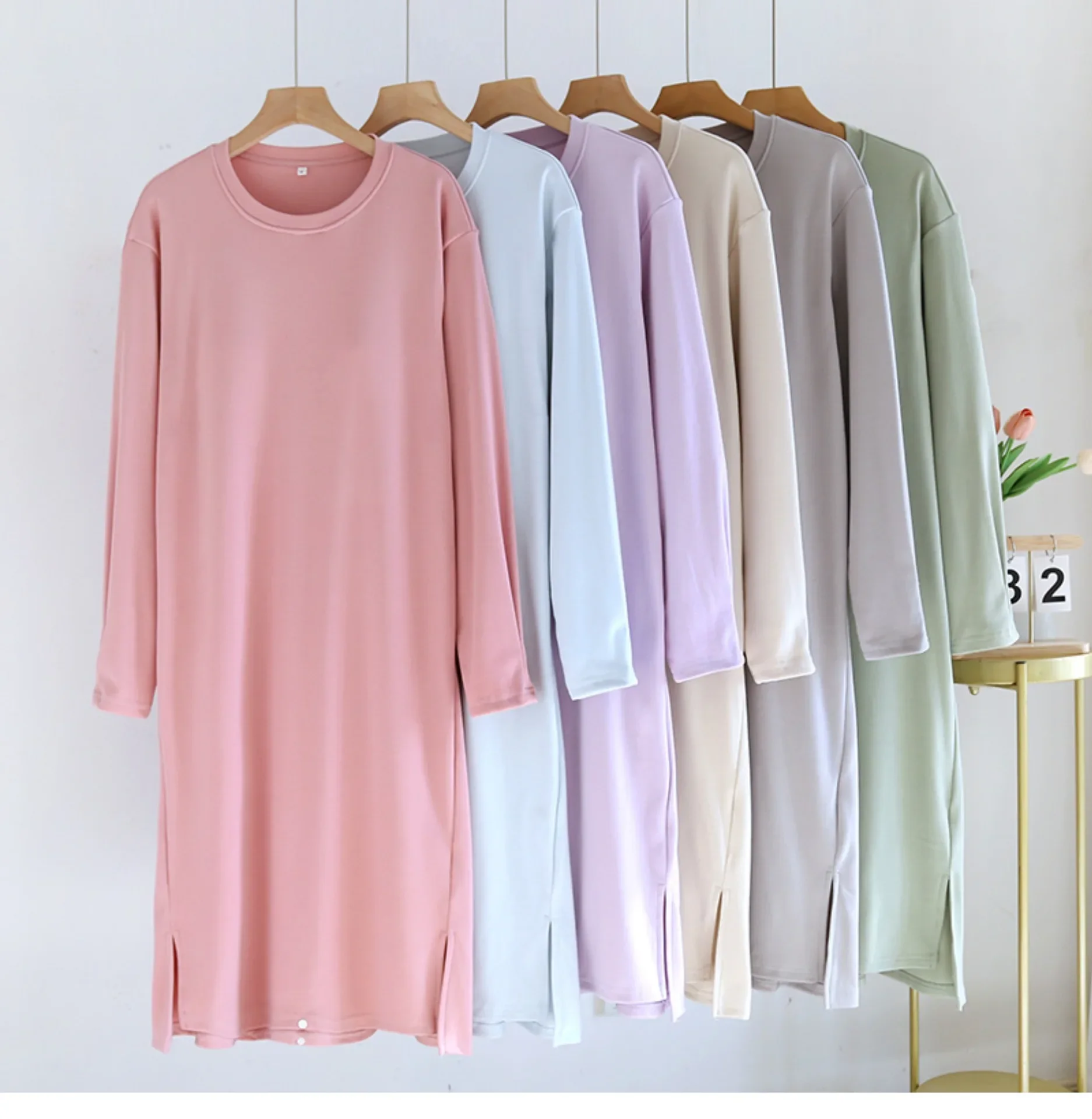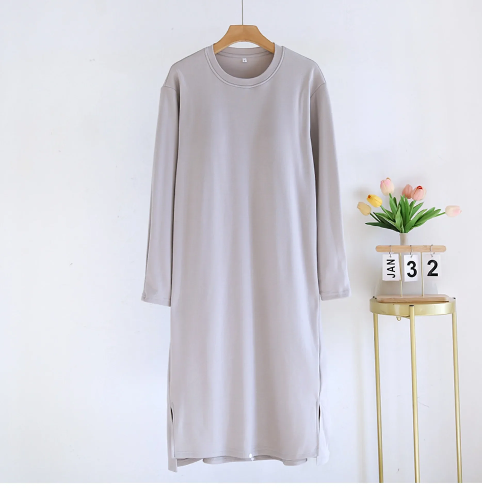 ثوب نوم نسائي من الصوف السميك، فستان طويل للمنزل، ملابس نوم مرنة ودافئة مع وسادة صدر، لون سادة بسيط يمكن ارتداؤه في الخارج