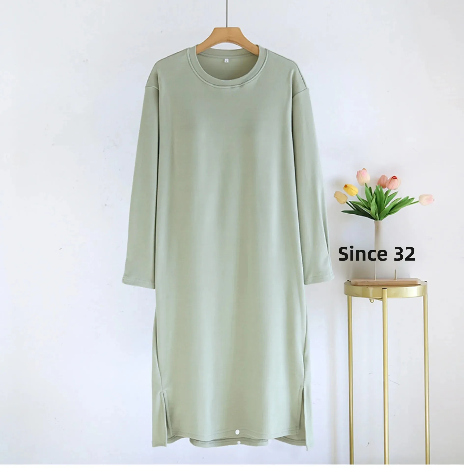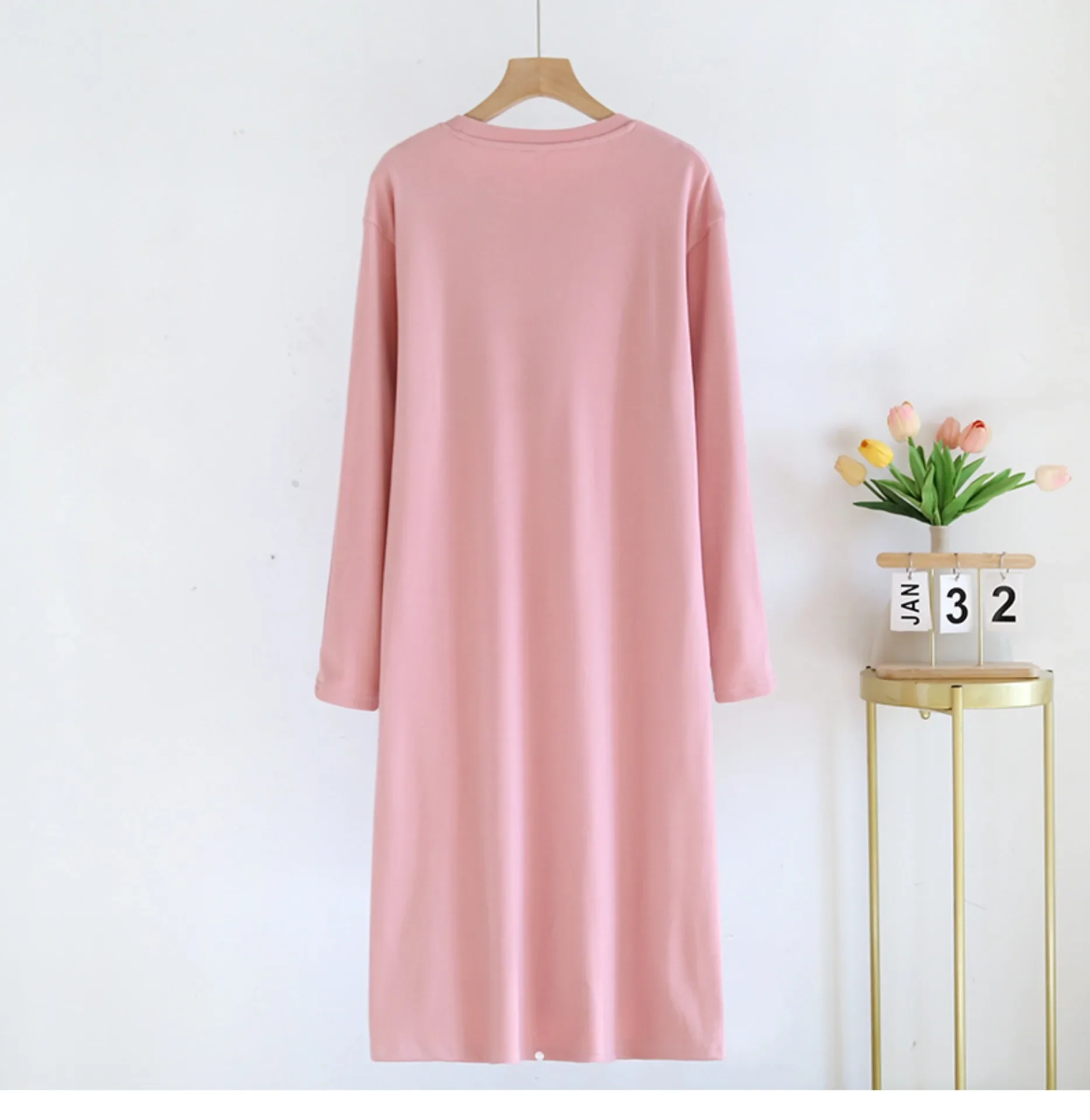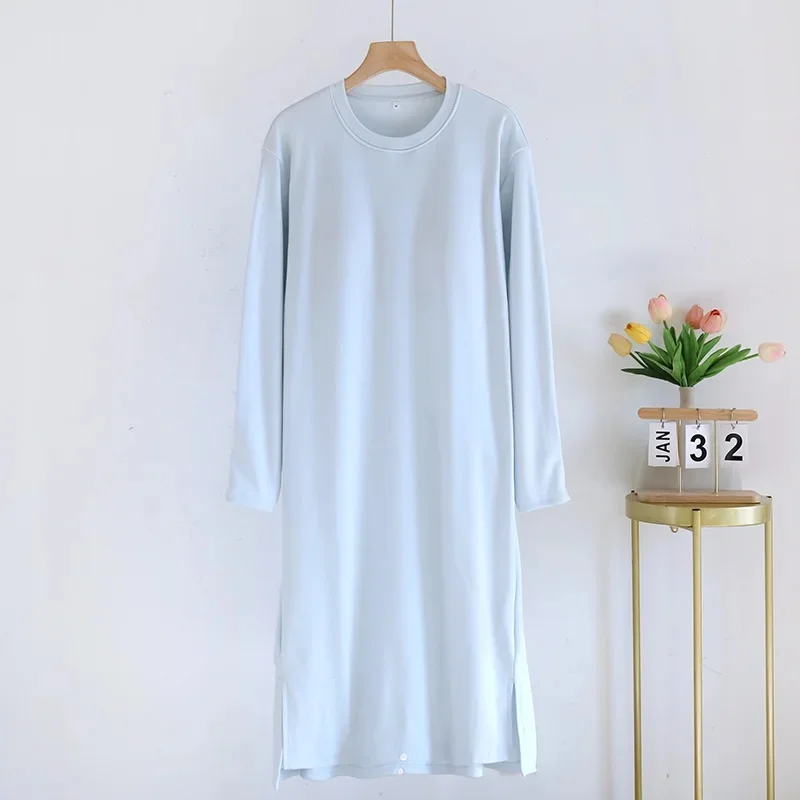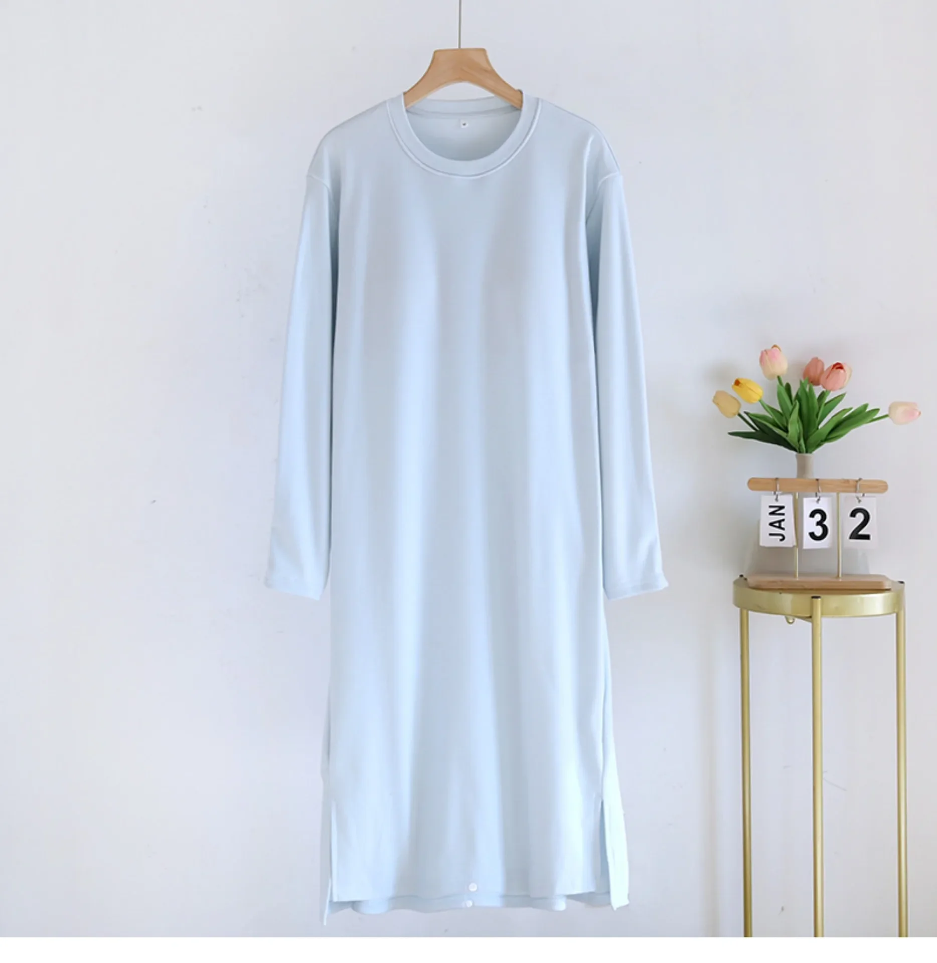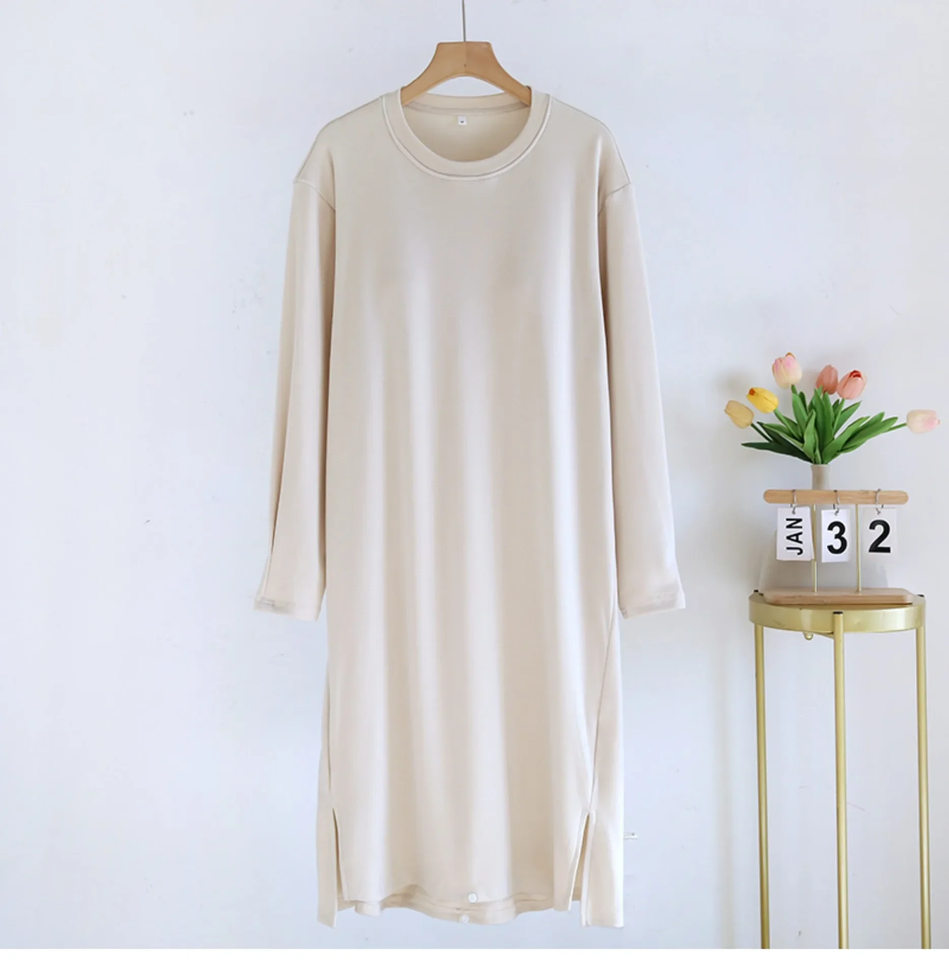 ثوب نوم نسائي من الصوف السميك، فستان طويل للمنزل، ملابس نوم مرنة ودافئة مع وسادة صدر، لون سادة بسيط يمكن ارتداؤه في الخارج