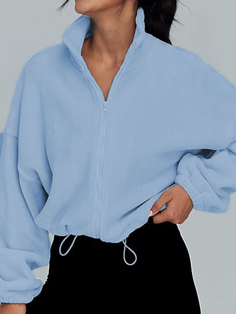 معطف رياضي من قماش البولار فليس بقلادة قائمة وحافة من天鹅绒 مع سحّاب، متوفر للبيع الساخن لملابس النساء.