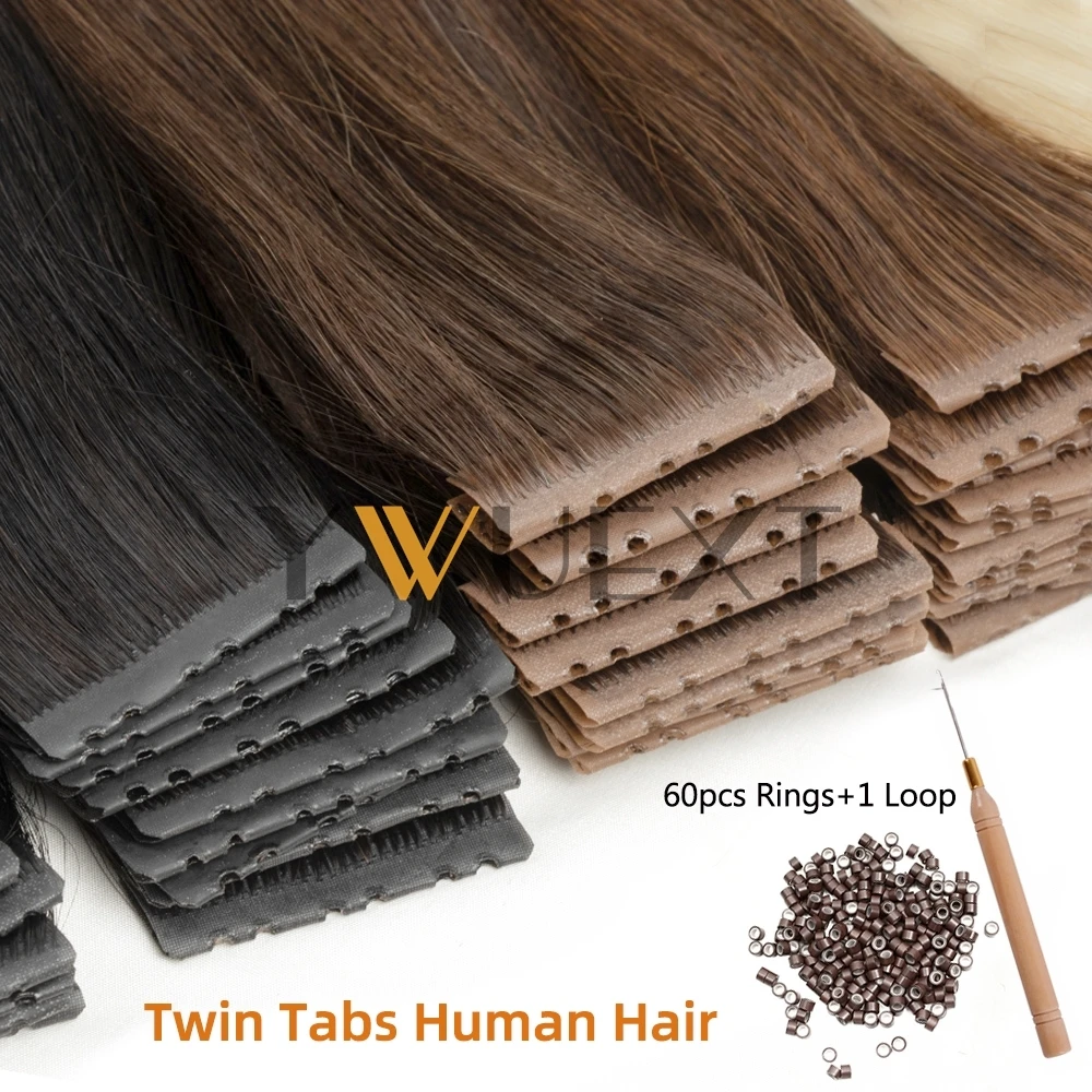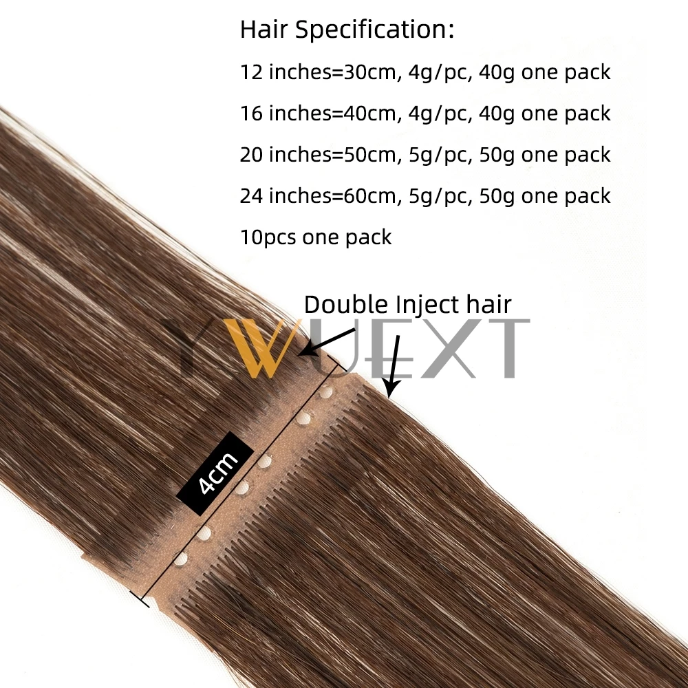 حقن مزدوج علامات التبويب المزدوجة الشعر البشري 12 "-24" بولي PU الجلد لحمة الشعر 4 سنتيمتر عرض سحب من خلال خرز صغير الشعر التمديد 10 قطعة/الحزمة