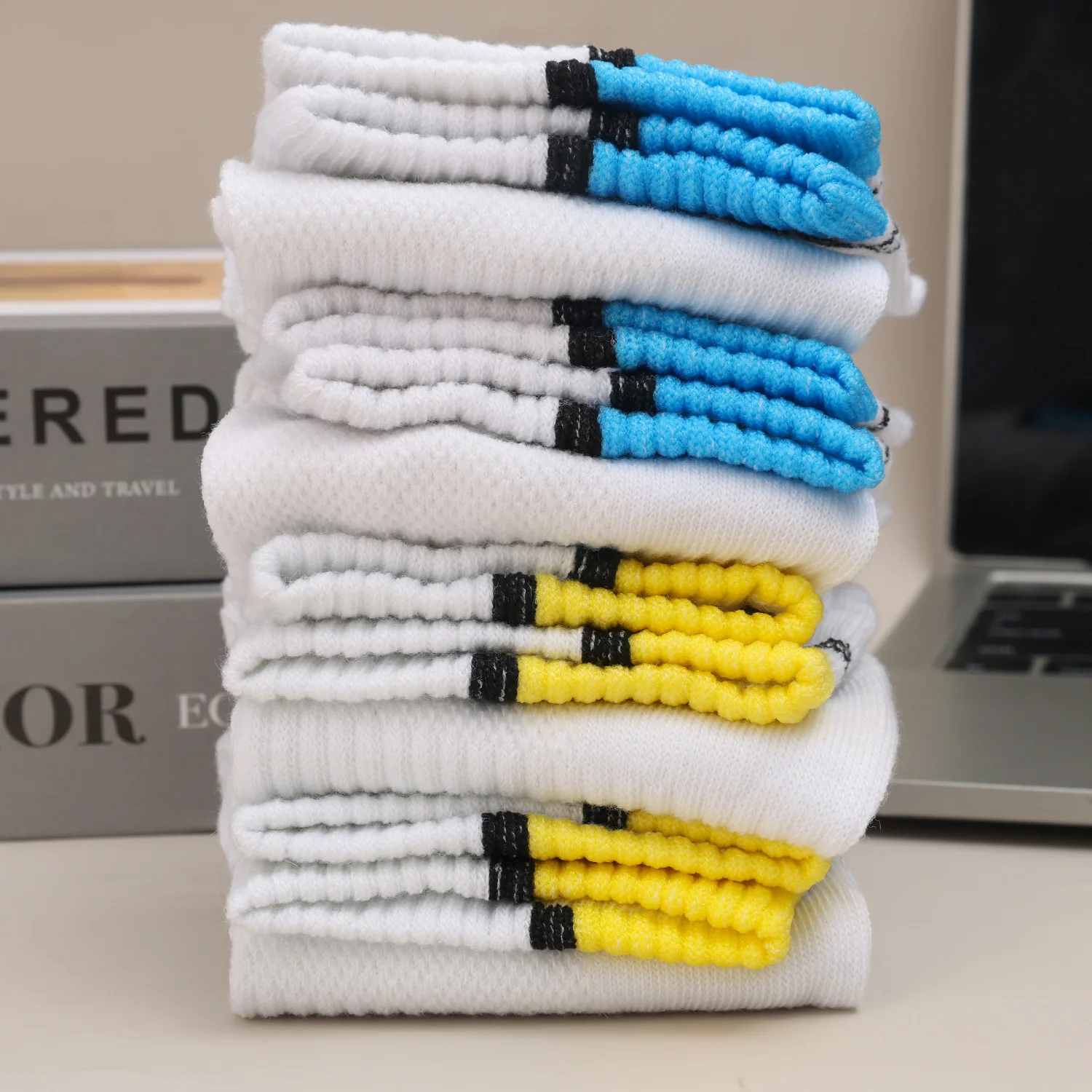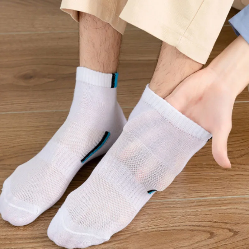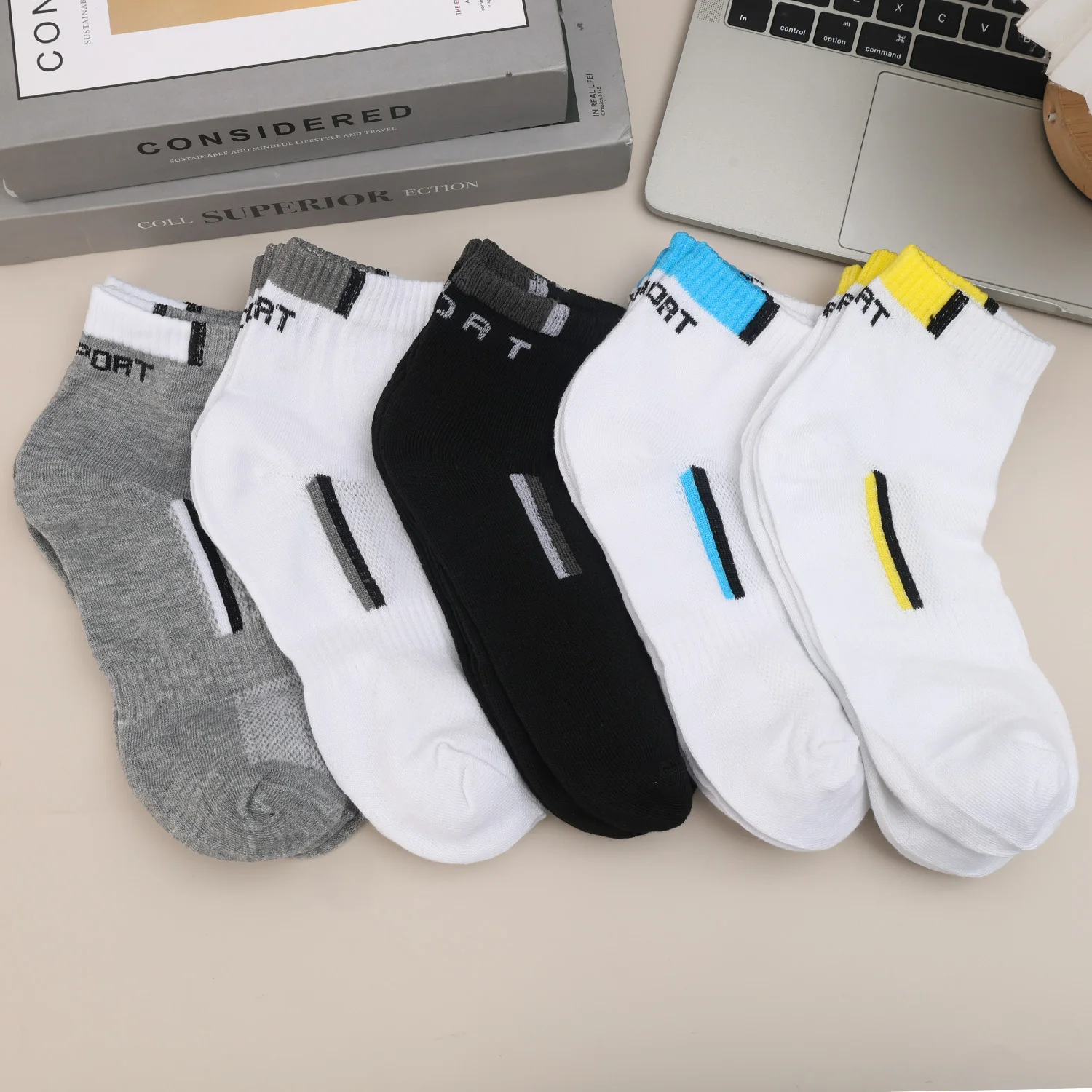 جوارب متوسطة للرجال صيفية قابلة للتنفس مطبوعة كتلة ألوان مقاومة للعرق ومضادة للرائحة مريحة متعددة الألوان للرقبة والكاحل جورب رياضي