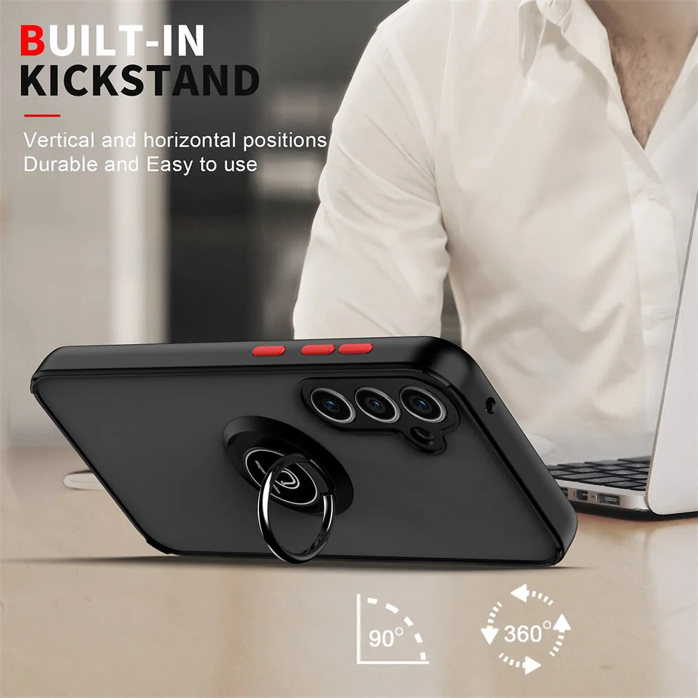 حافظة مغناطيسية غير لامعة مقاومة للصدمات لهاتف سامسونج جالاكسي A03 A04 A11 A12 A13 A14 A22 A30 A32 A33 A32 A51 A52 A71 A72 غطاء حامل الحلقة