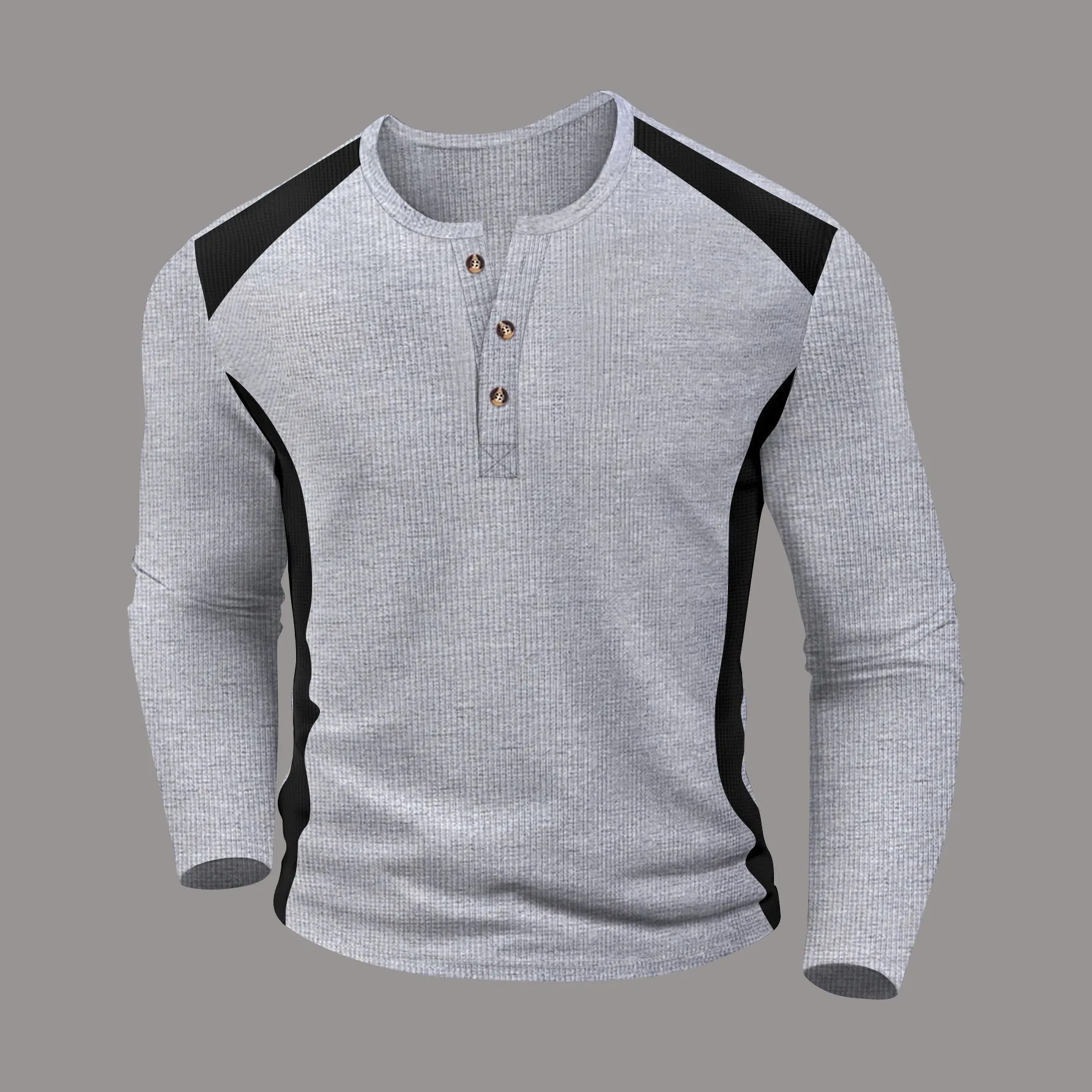 قميص هنري رجالي جديد مخطط متعدد الألوان بأزرار وأكمام طويلة لملابس الخريف غير الرسمية