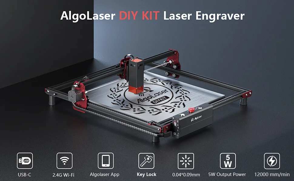 من السهل جدًا الاتصال: يدعم النقش بالليزر DIY KIT اتصالات 2.4G WiFi وUSB-C. بالنسبة للمبتدئين، يوفر برنامج LightBurn وLaserGRBL سهولة الوصول إلى التحكم والنقش دون اتصال بالإنترنت. استخدم تطبيق الهاتف الذكي (AlgoLaser) لإبداع سهل بدون جهاز كمبيوتر.
