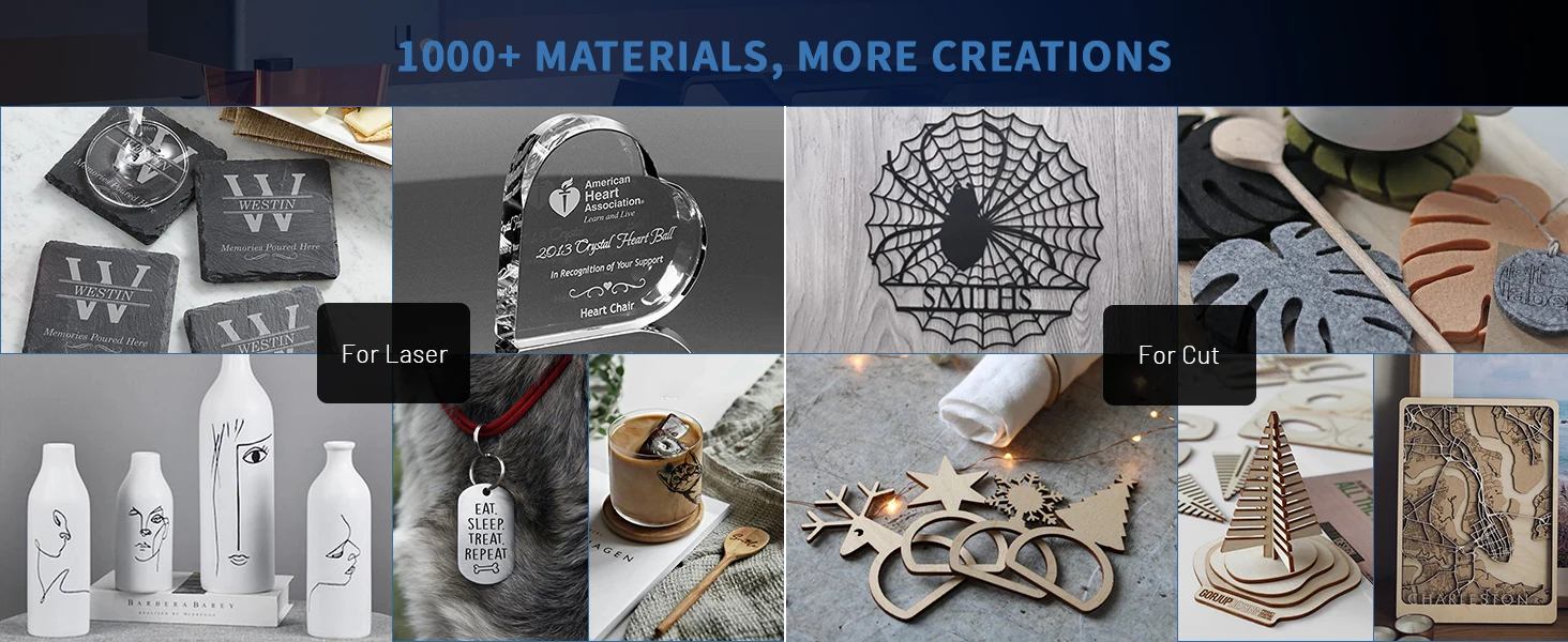 المواد المتاحة للقطع:لوح ورقي، لوح KT، قماش لباد، جلد، خشب رقائقي رقيق، أكريليك أسود رقيق، إلخ.