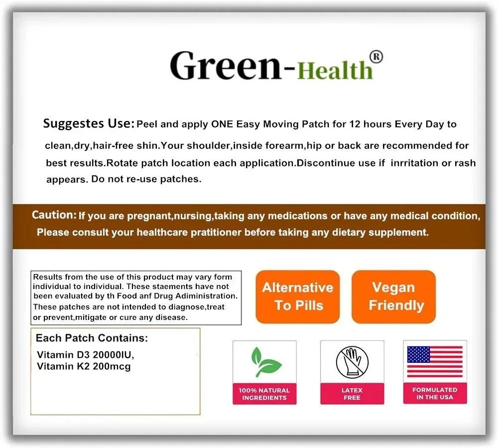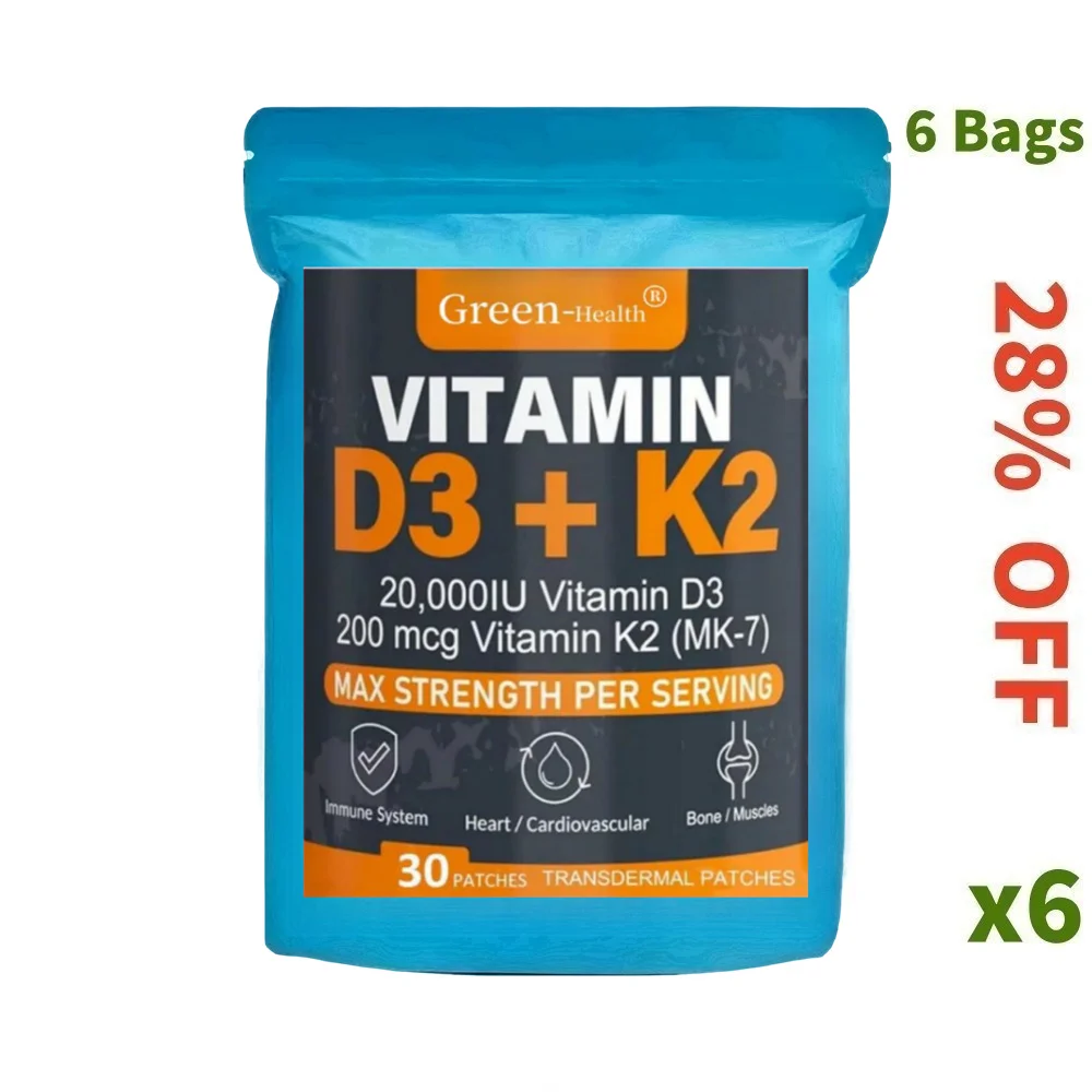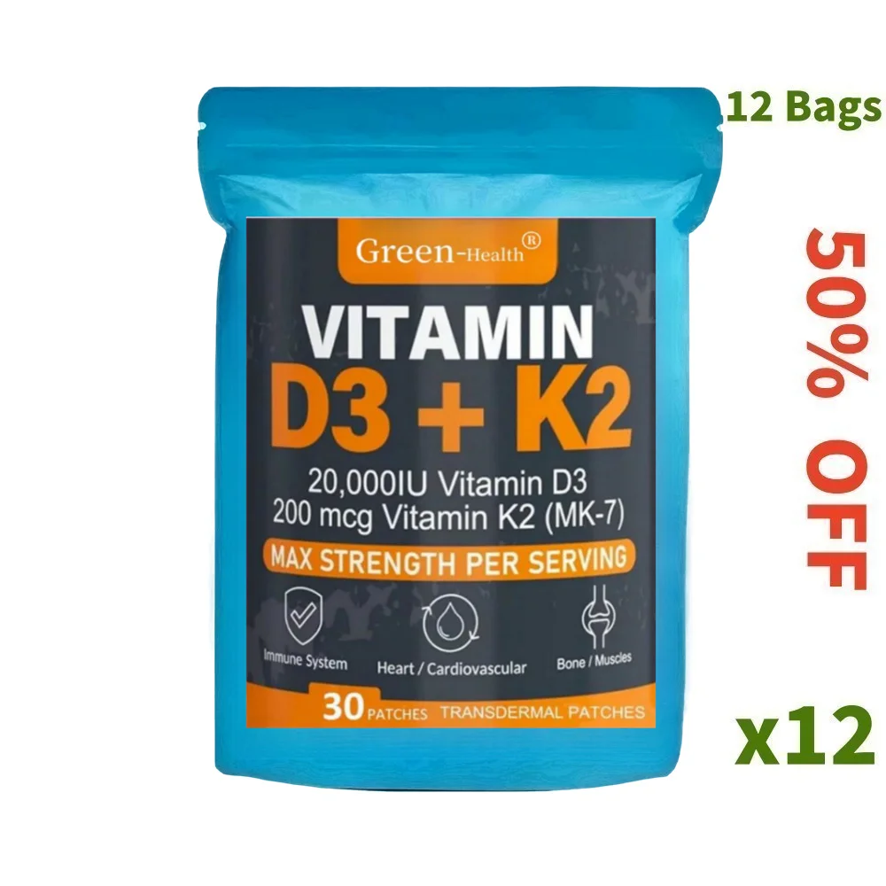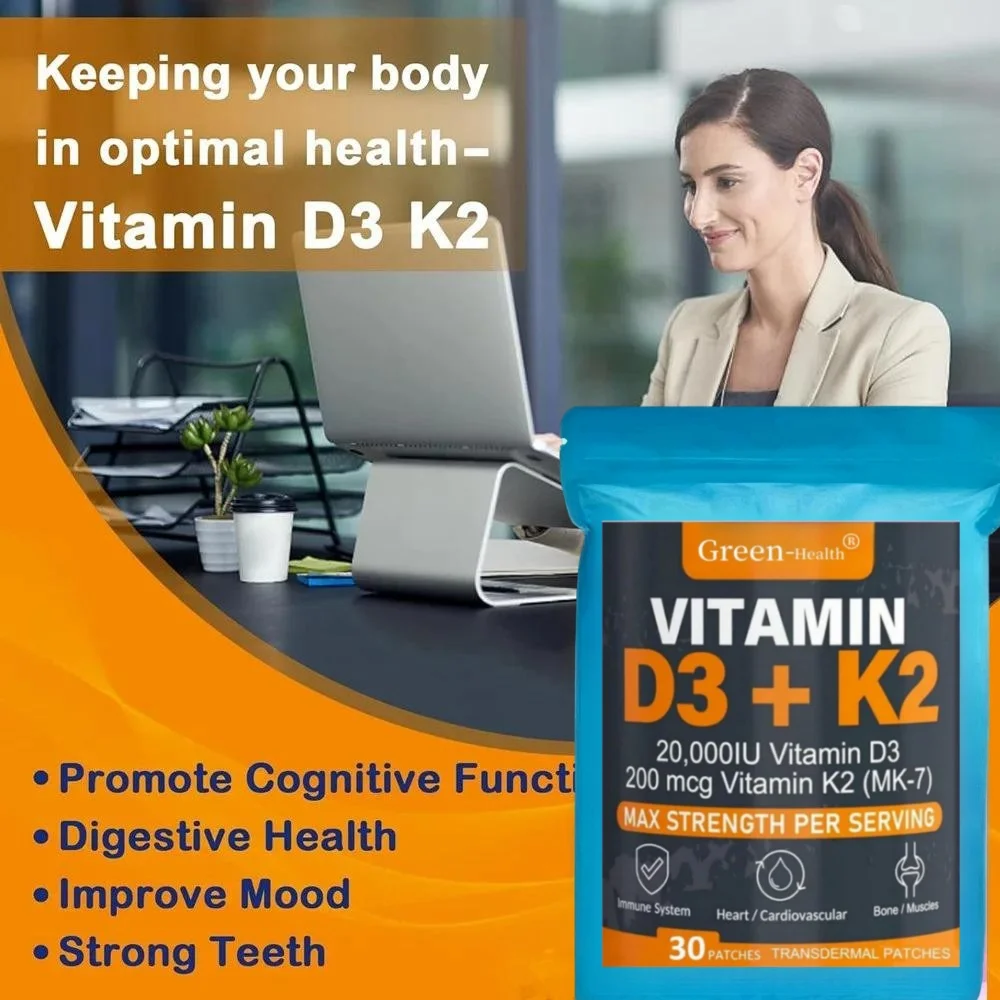 30 رقعة من فيتامين D3 وK2 بقع عبر الجلد تدعم العظام والعضلات القوية وامتصاص الكالسيوم وصحة المناعةحول هذا البند