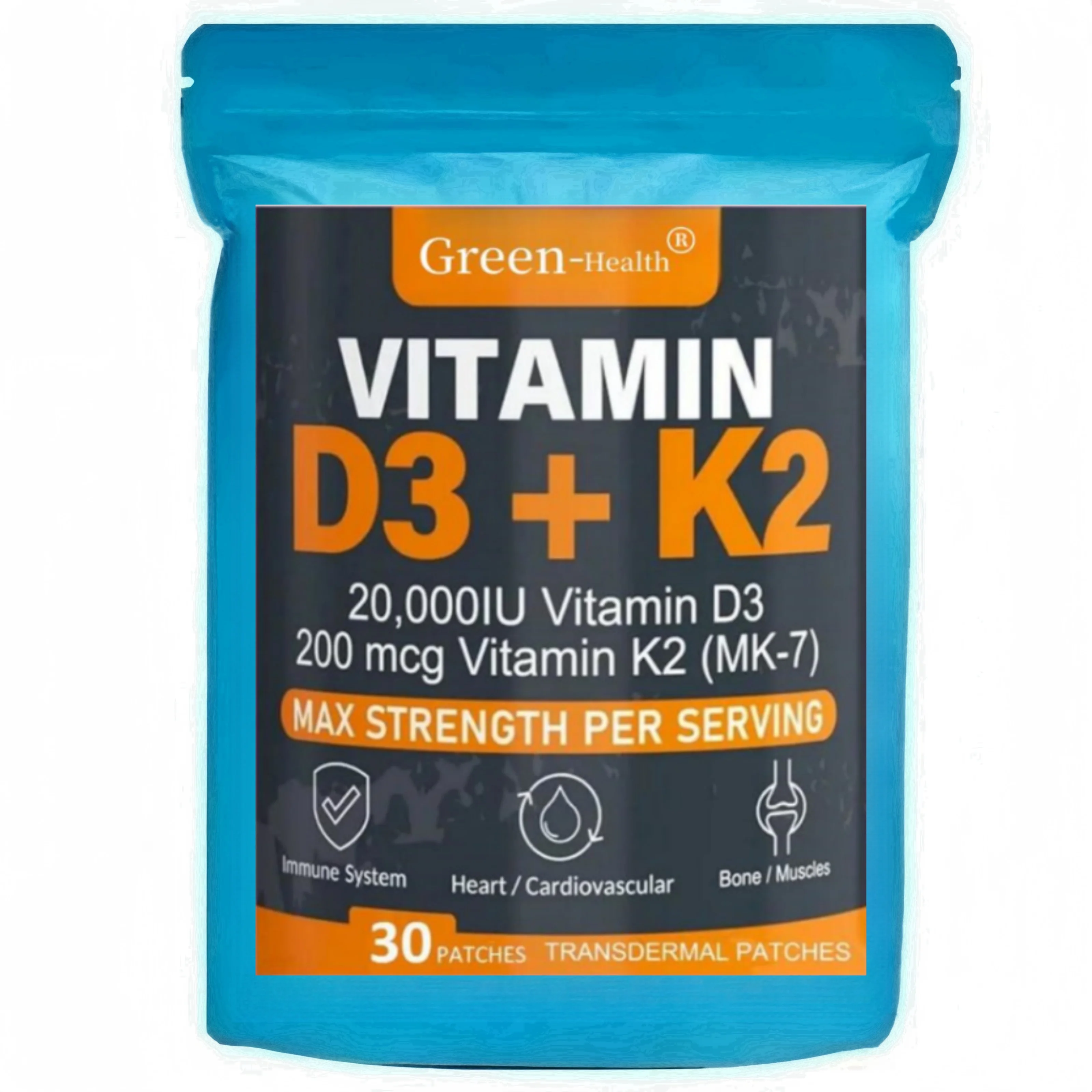 30 رقعة فيتامين د3 وK2 عبر الجلد تدعم العظام القوية والعضلات وامتصاص الكالسيوم وصحة المناعة