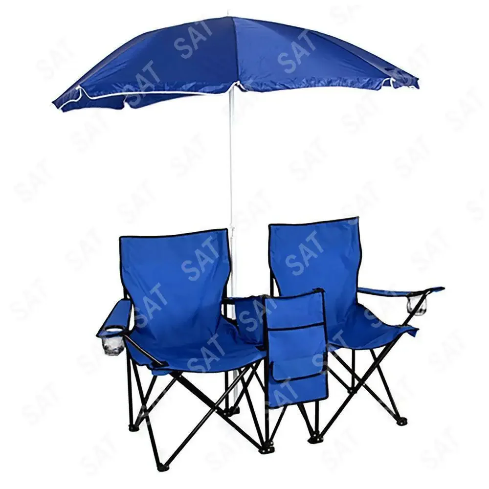 كرسي مزدوج قابل للنقل + مظلة، صب بيكي نيك، بلاج، تخييم، فيرش