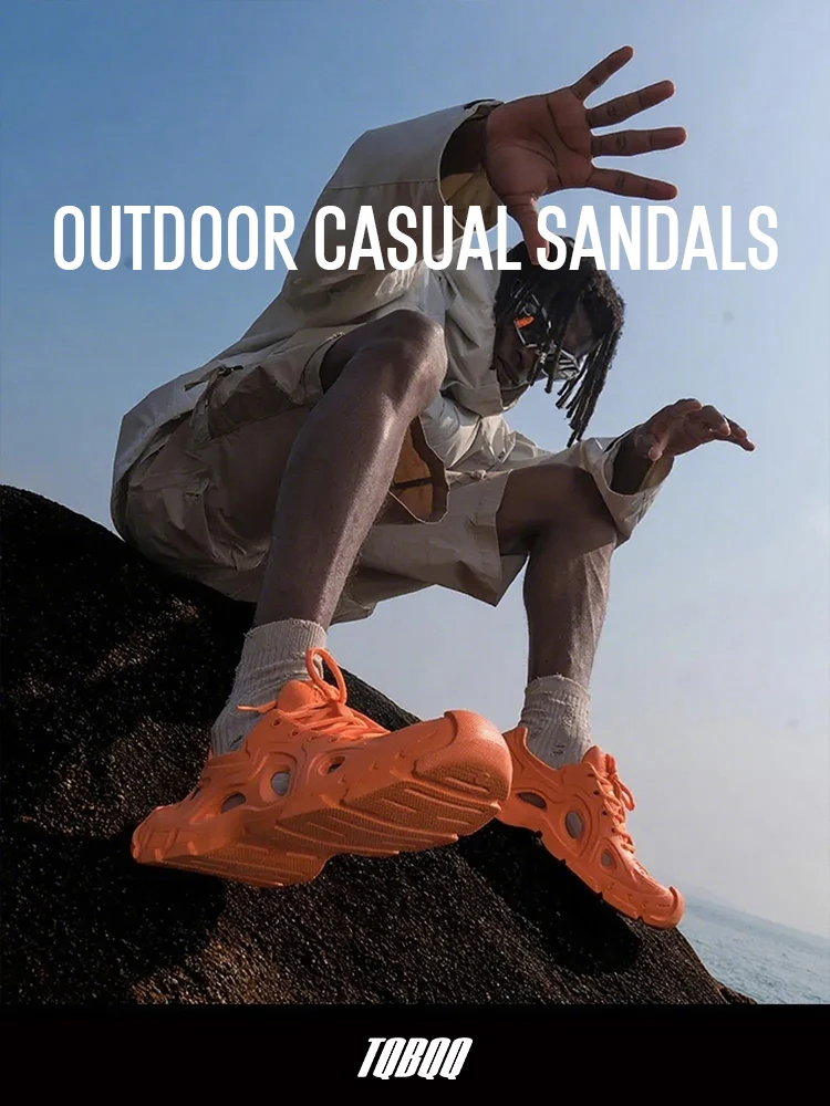 صنادل كاجوال للاستخدام الخارجي للرجال والنساء، صنادل صيفية بغطاء للرأس مريحة ونعل سميك للشاطئ قابلة للتنفس
