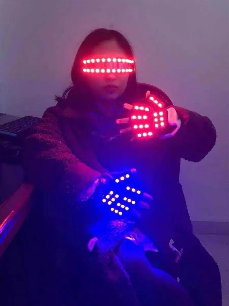 ملابس مسرح مضيئة ، قفازات ليد ، نظارات اصطرابية ، قضبان الليزر ، قاعة الرقص ، حفلات المسرح ، الدعائم