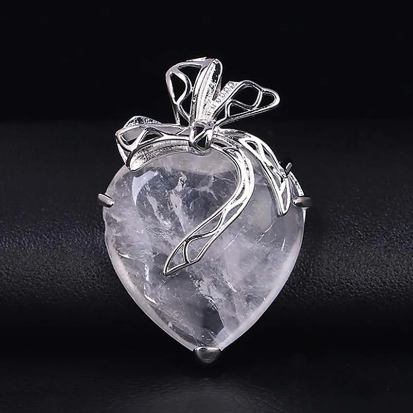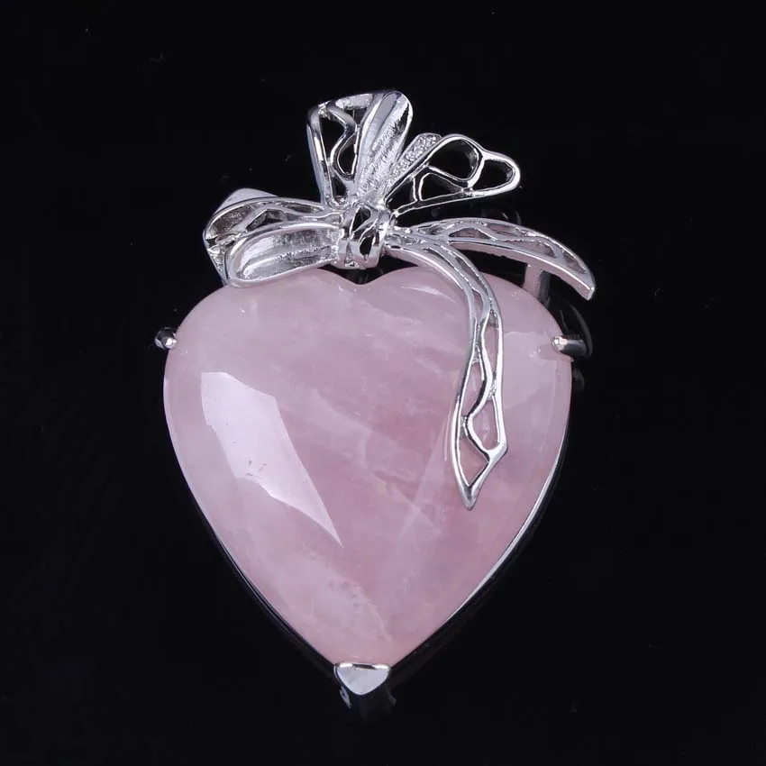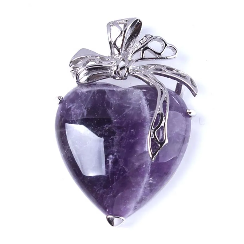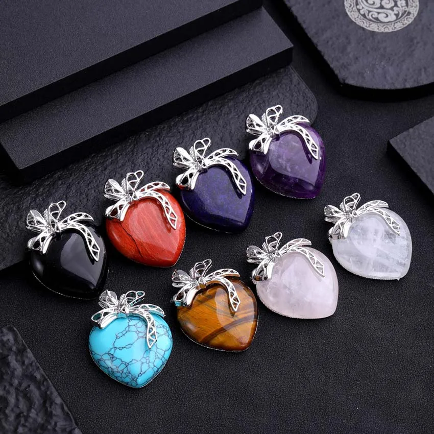 الكريستال الطبيعي القلب حجر المعلقات للنساء عقد دي اي واي جمشت روز كوارتز العقيق الأوشحة ملفوفة حجر قلادة مجوهرات