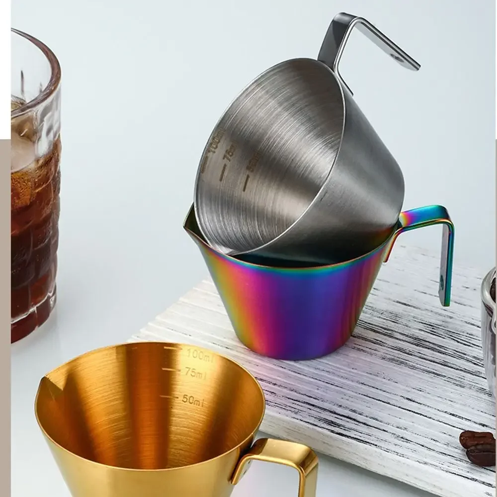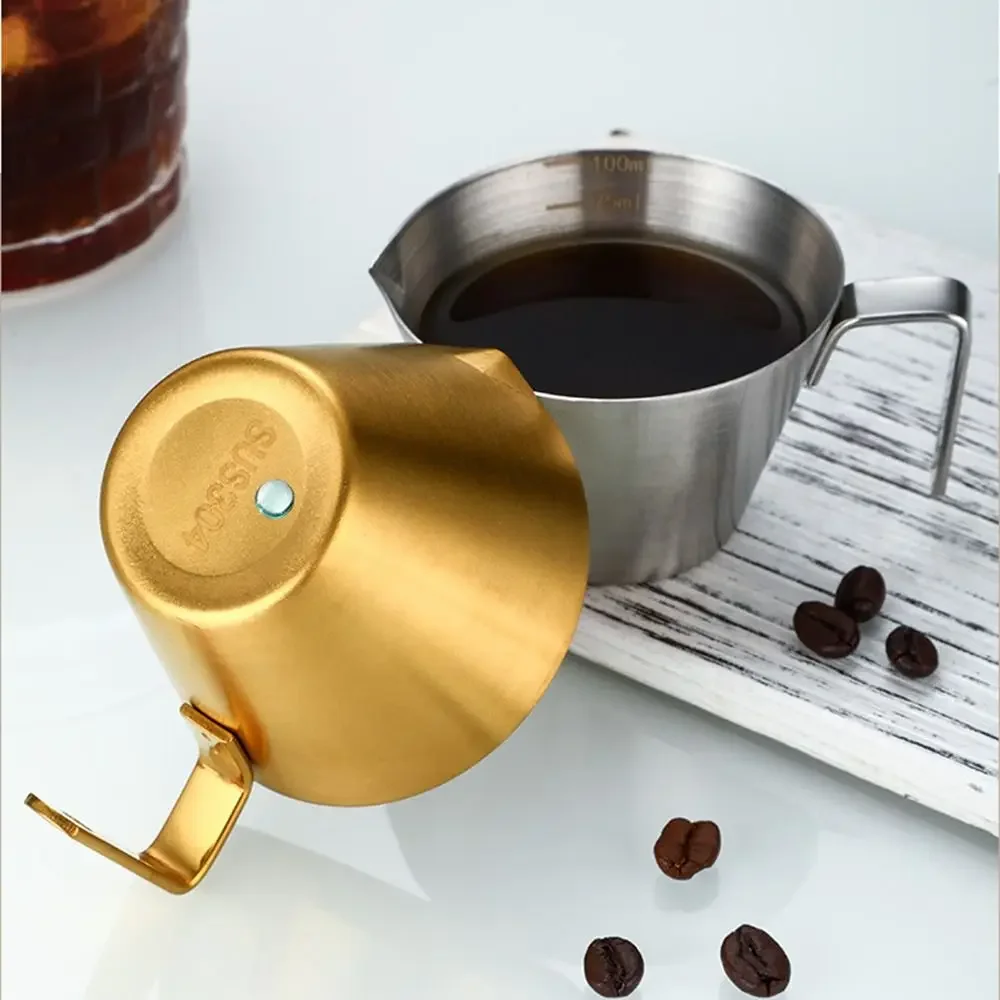 304 كوب استخلاص القهوة من الفولاذ المقاوم للصدأ مع مقياس ملعقة حليب صغيرة صنع كوب إسبرسو قياس كوب أدوات المطبخ كوب