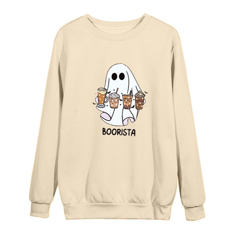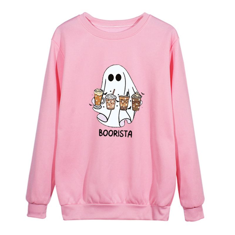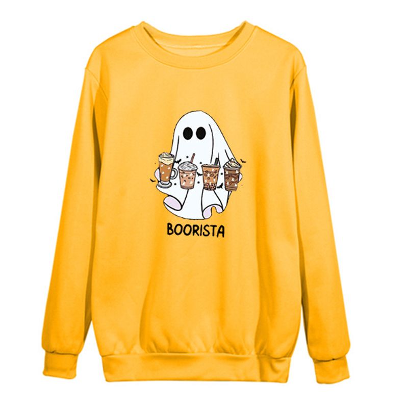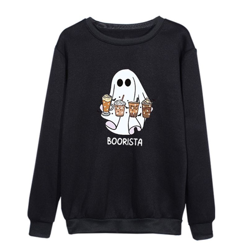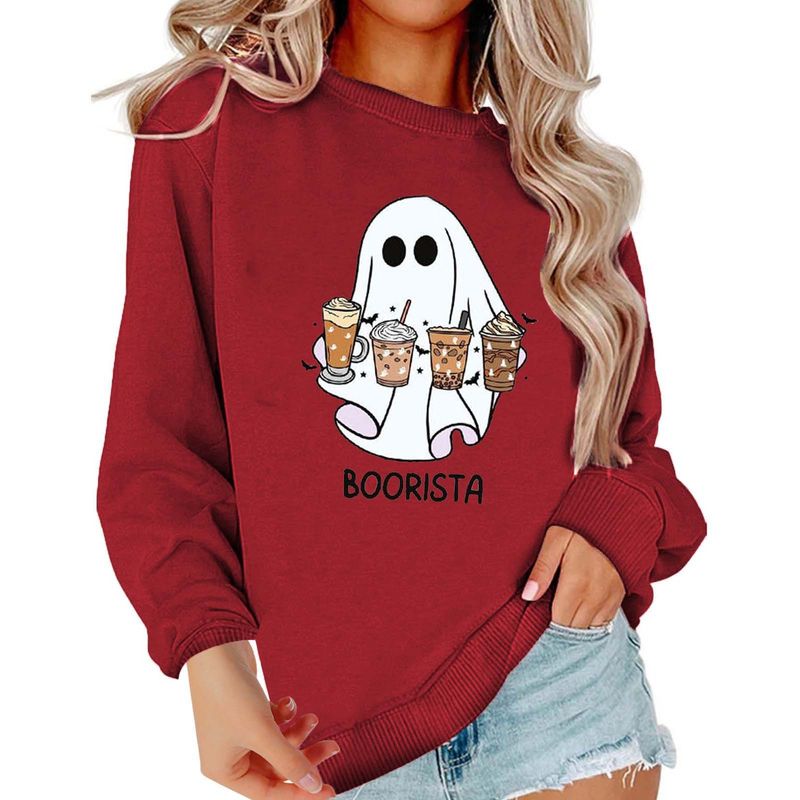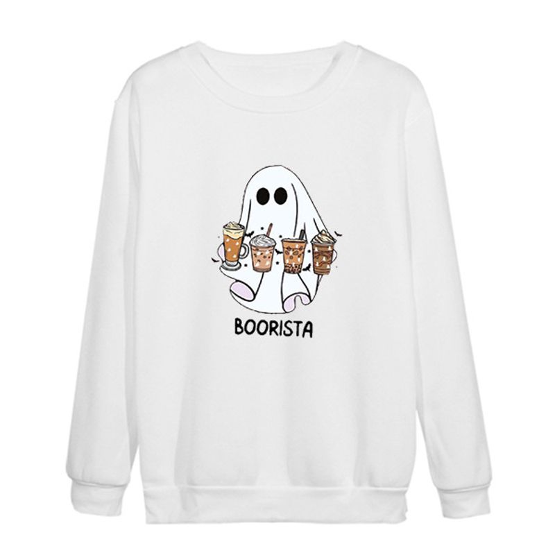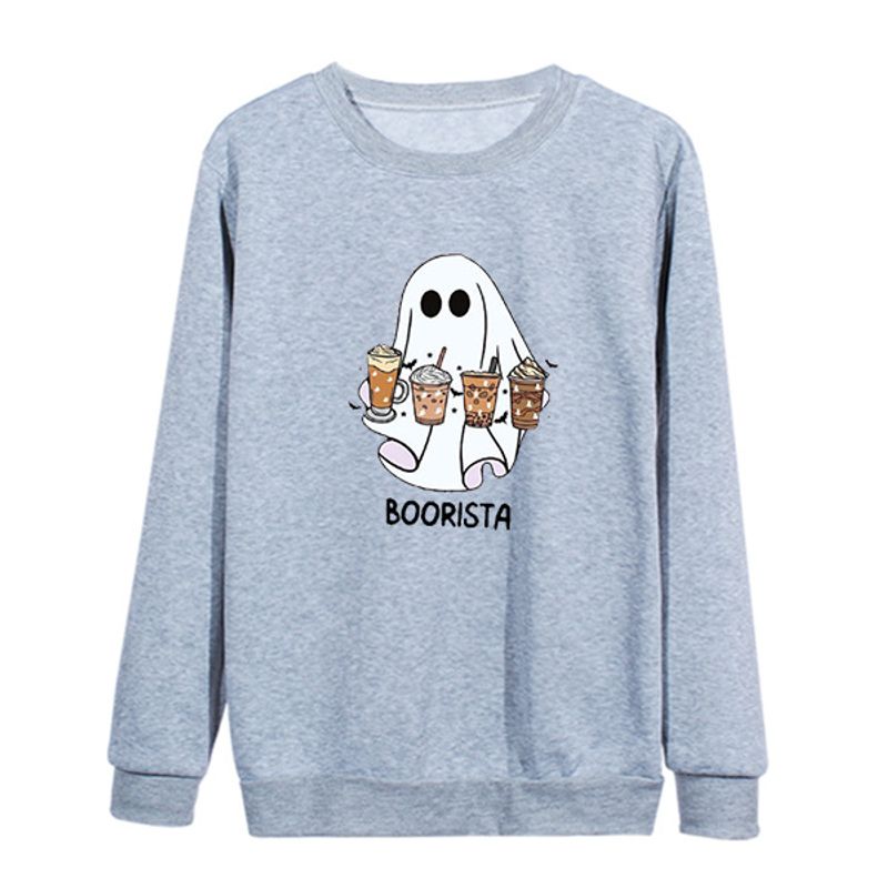 هودي بكم طويل ورقبة مستديرة مطبوع للنساء