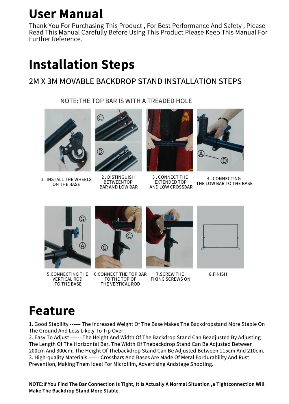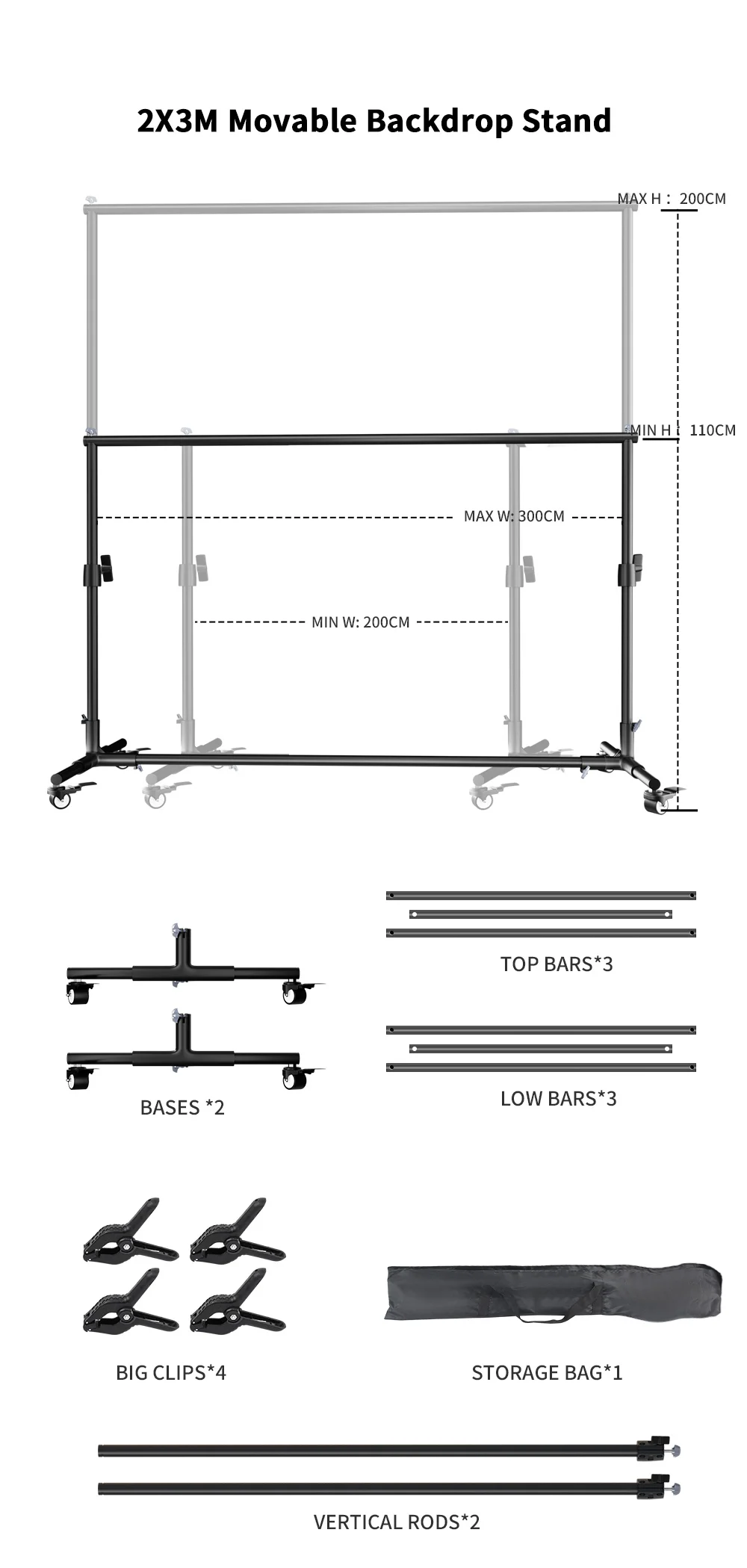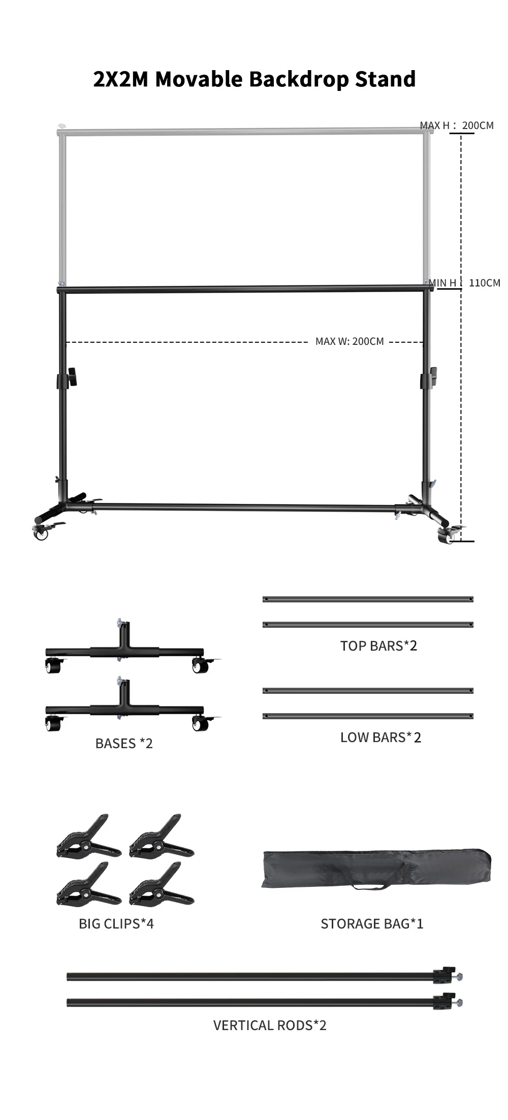 خلفيات فوتوغرافية مجموعة نظام دعم الوقوف ، خلفيات استوديو ، خلفيات عجلات ، احترافية ، ارتفاع قابل للتعديل ، 2x2m ، 2x3m