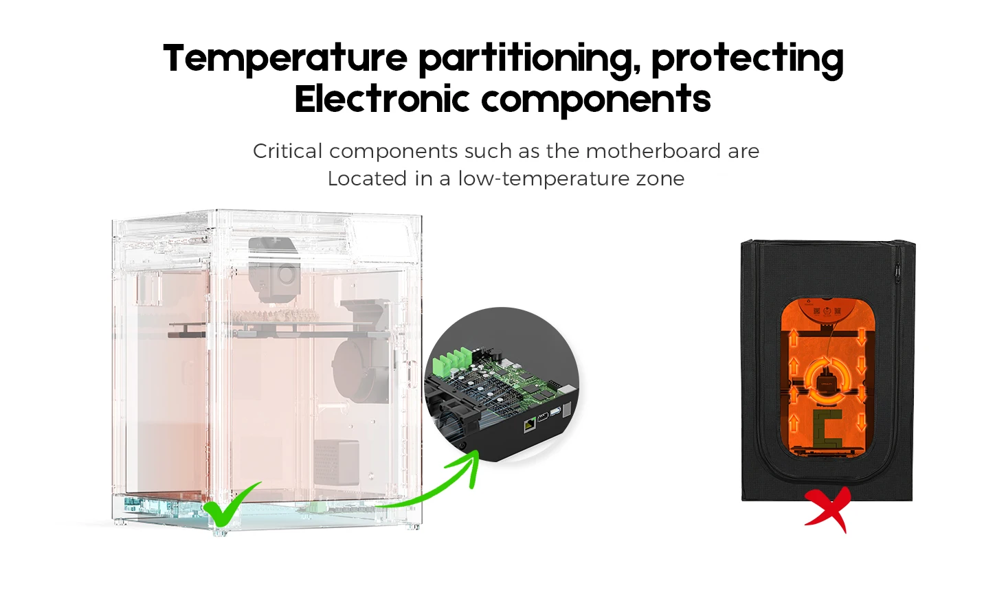 Insulation and Odor Isolation: Unique internal structure isolates odors, ideal for printing high-temperature materials like ABS and TPU.