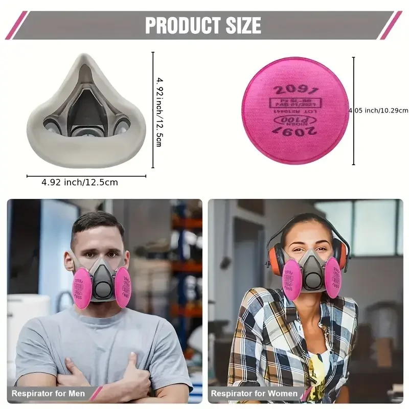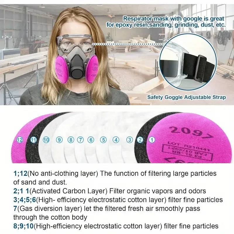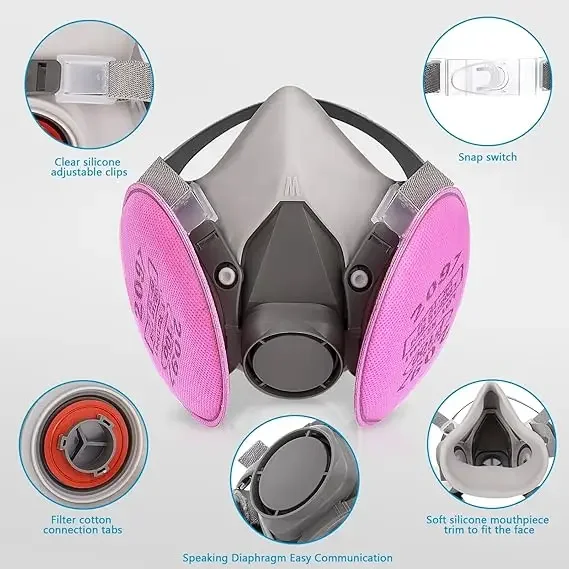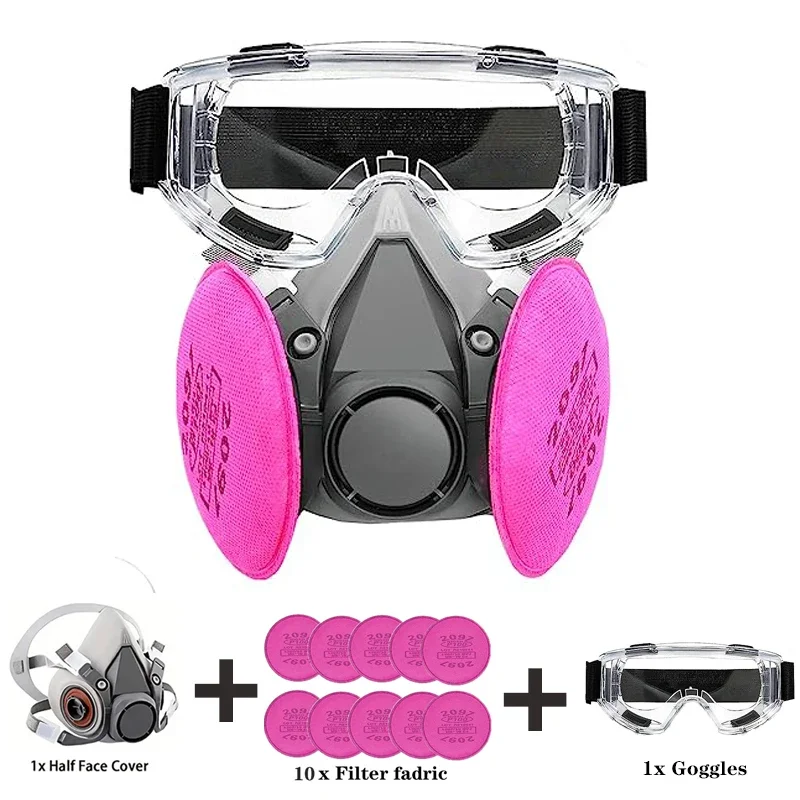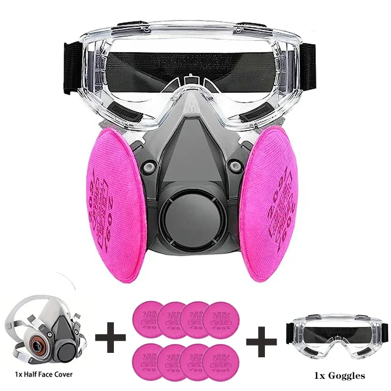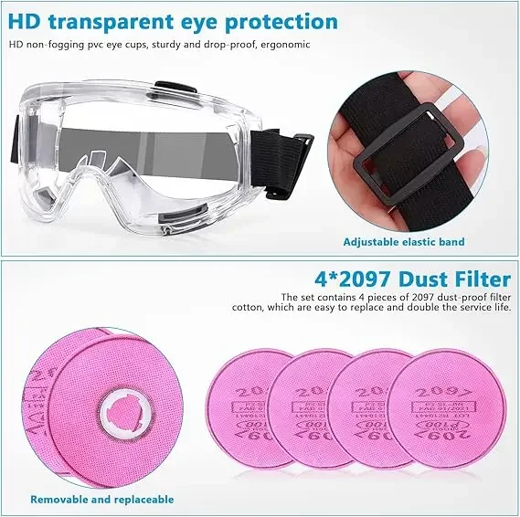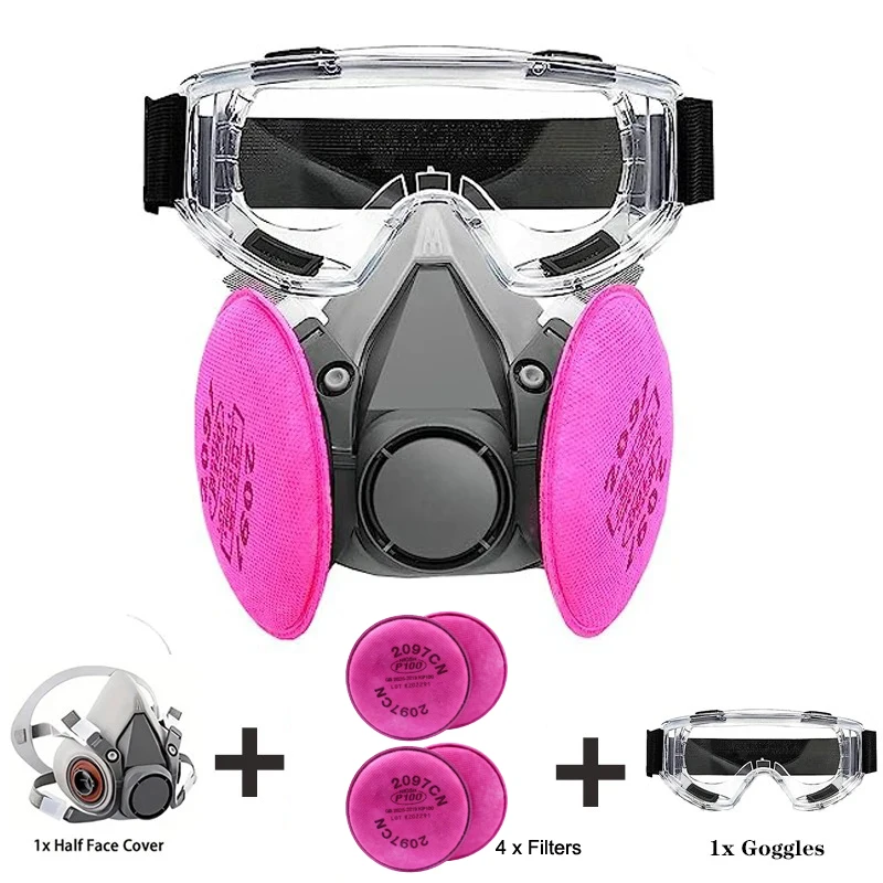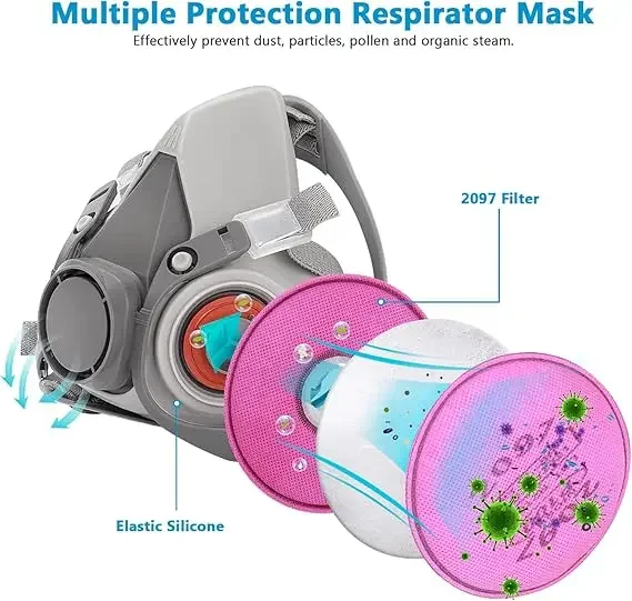 قناع تنفس واقي من الغاز 6200 مقاوم للغبار نصف وجه مع مجموعات نظارات مرشح 2097 لطلاء غبار الإيبوكسي وطحن لحام البخار العضوي