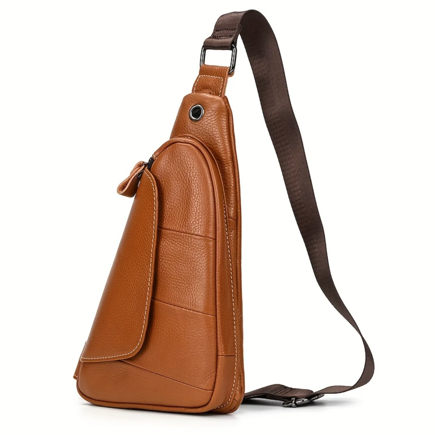 حقيبة كتف للرجال من الجلد الطبيعي، حقيبة كتف كروس للجري والسفر والمشي لمسافات طويلة، خفيفة الوزن من جلد البقر القديم