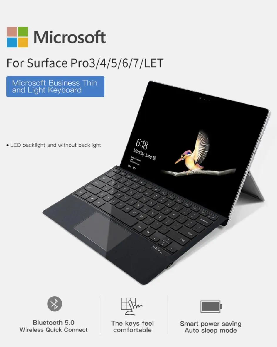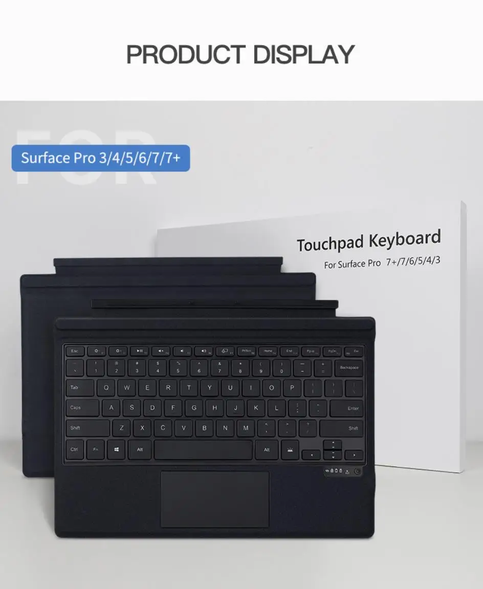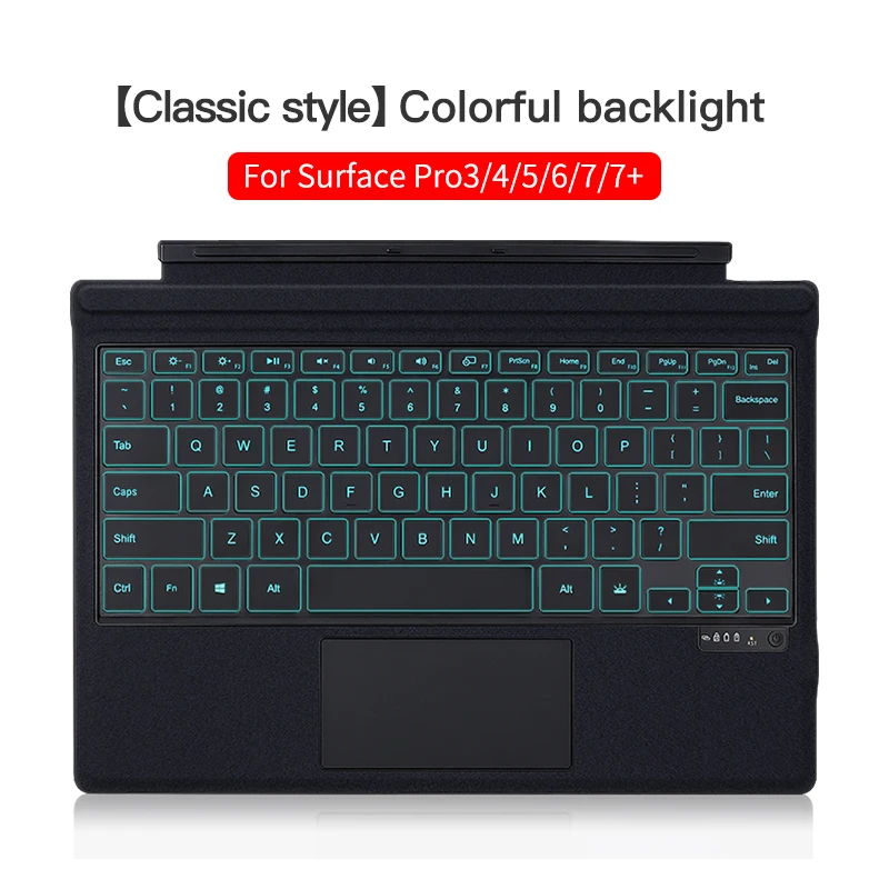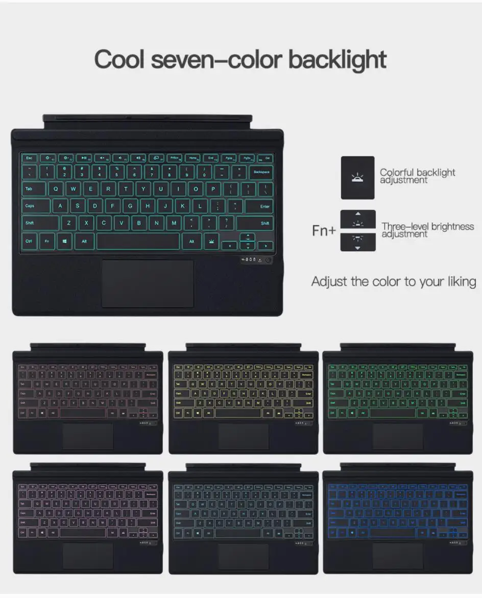 لوحة مفاتيح كمبيوتر لوحي لاسلكية 2025 لجهاز Microsoft Surface Pro 7 Plus 6 5 4 3 Go 1 2 3 مع لوحة تتبع خلفية ملونة للكمبيوتر المحمول