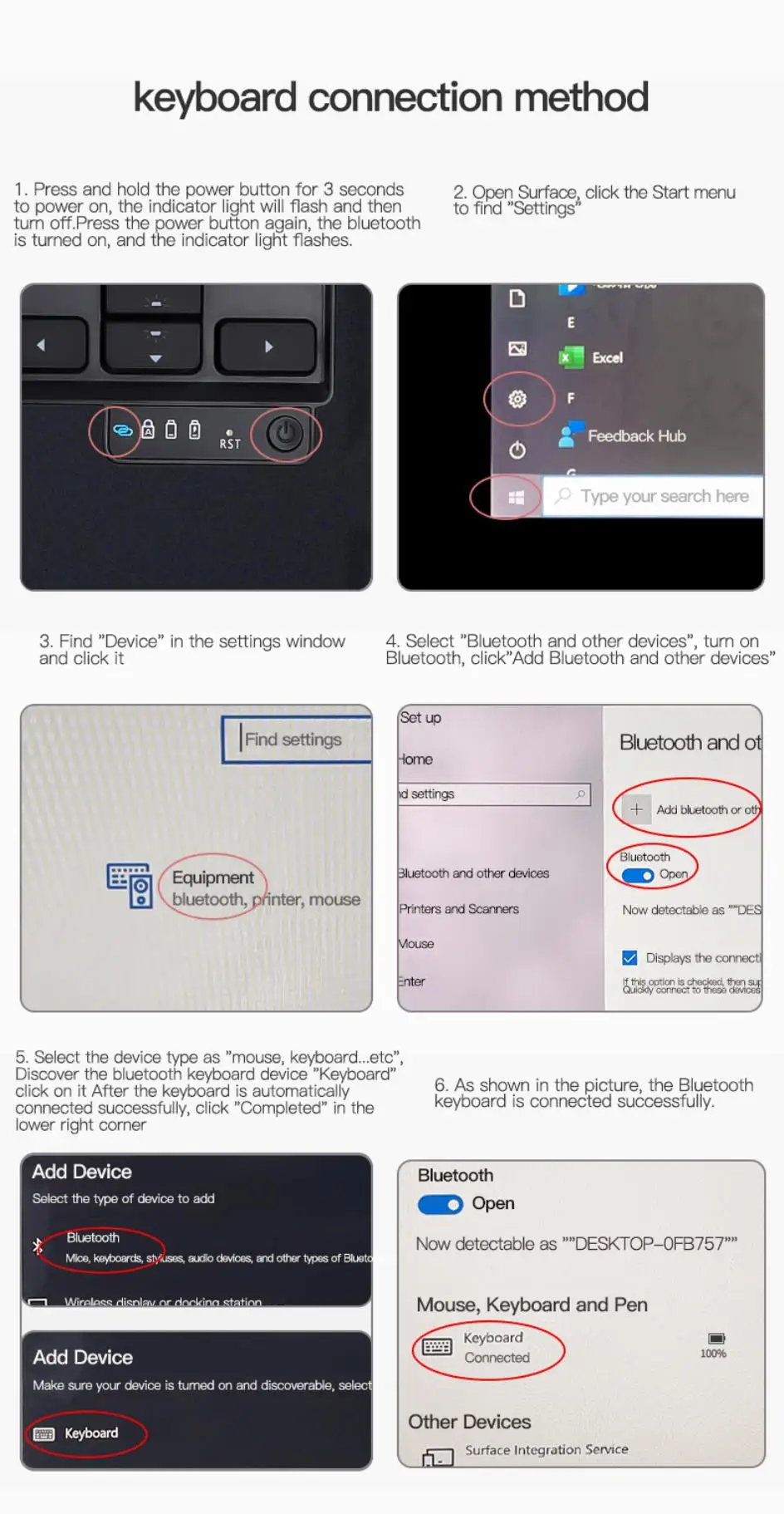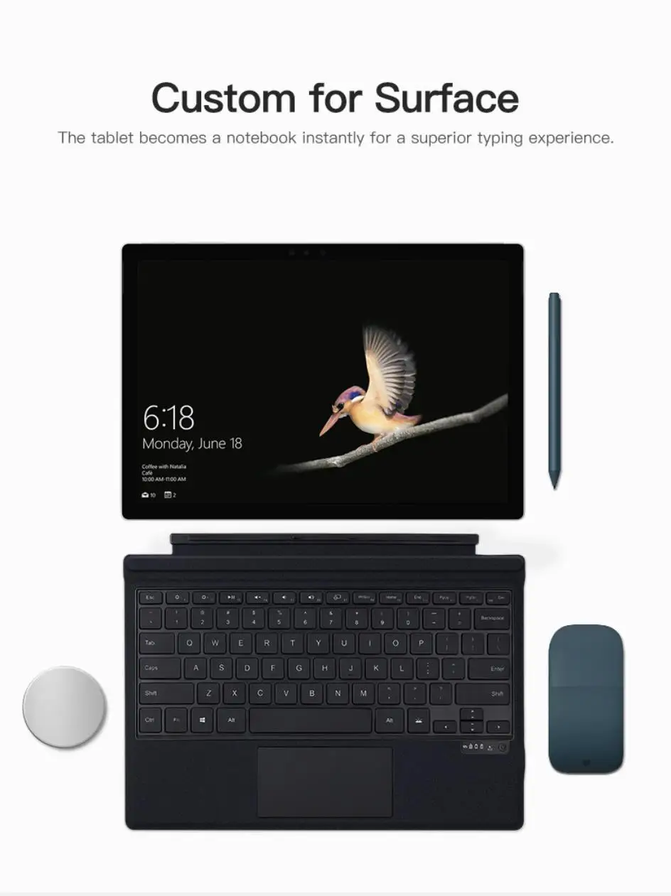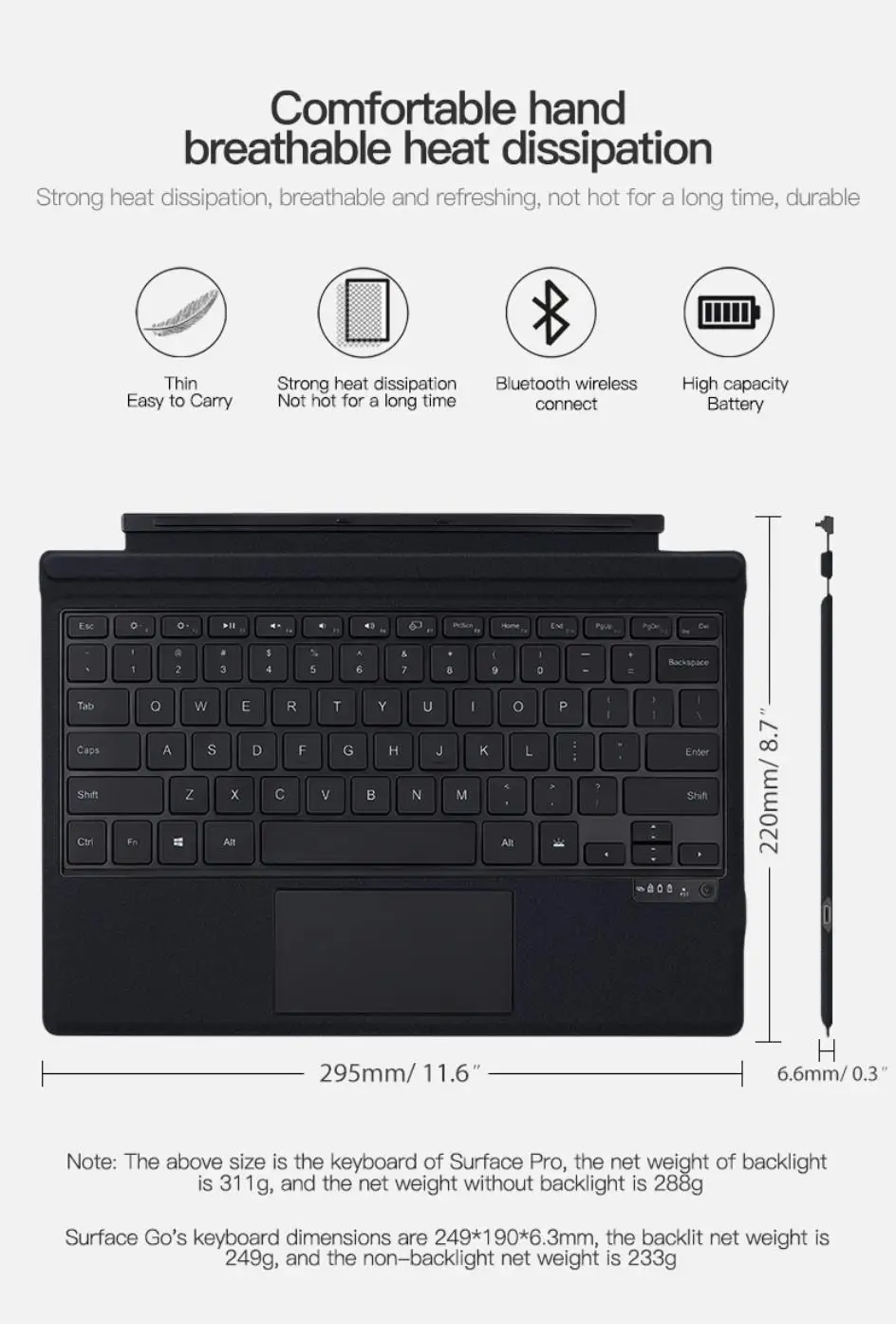 لوحة مفاتيح كمبيوتر لوحي لاسلكية 2025 لجهاز Microsoft Surface Pro 7 Plus 6 5 4 3 Go 1 2 3 مع لوحة تتبع خلفية ملونة للكمبيوتر المحمول