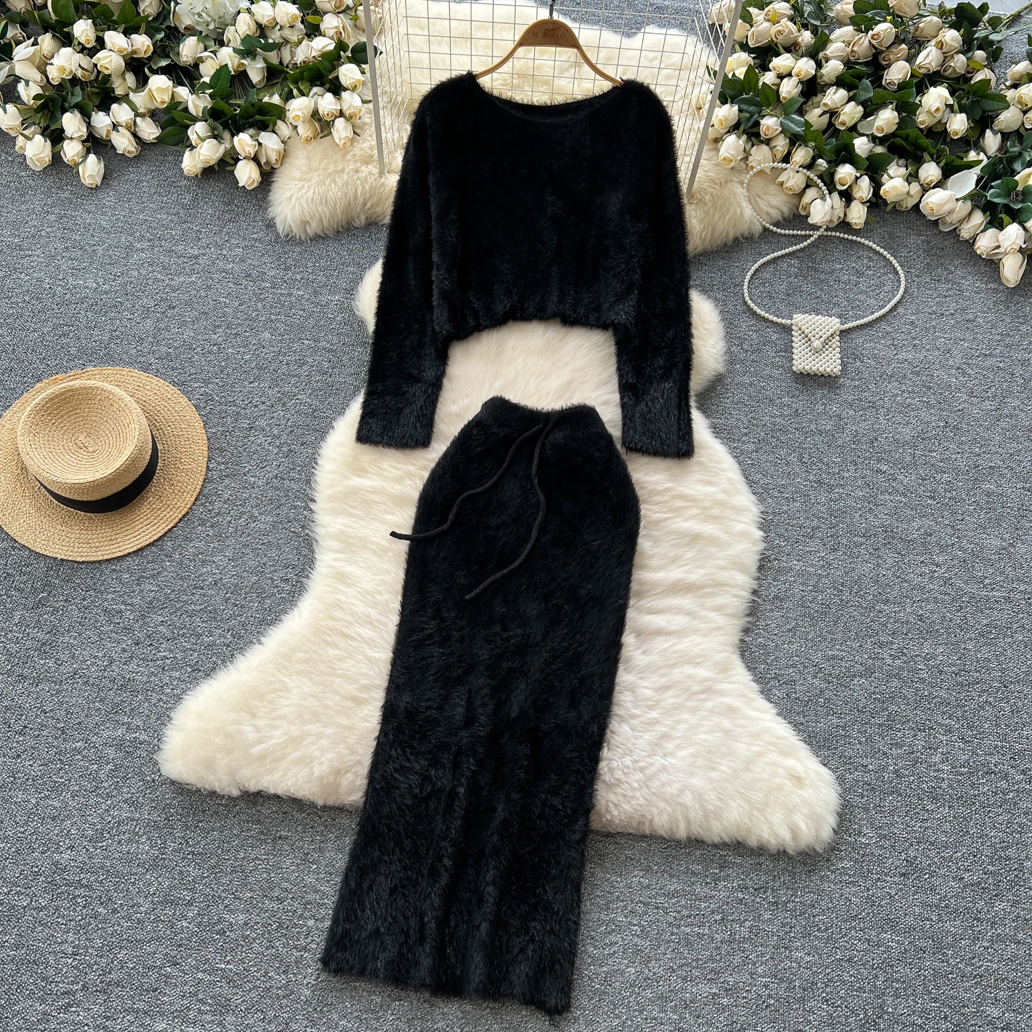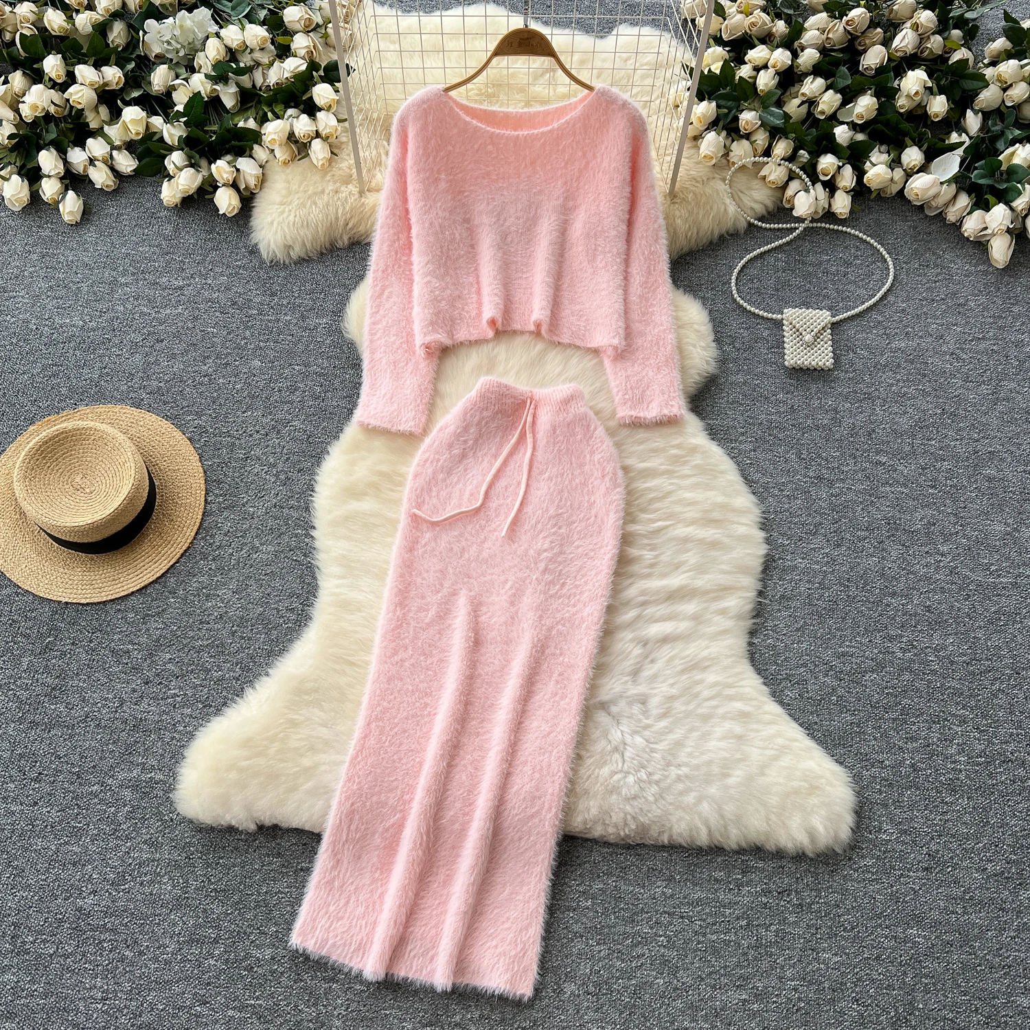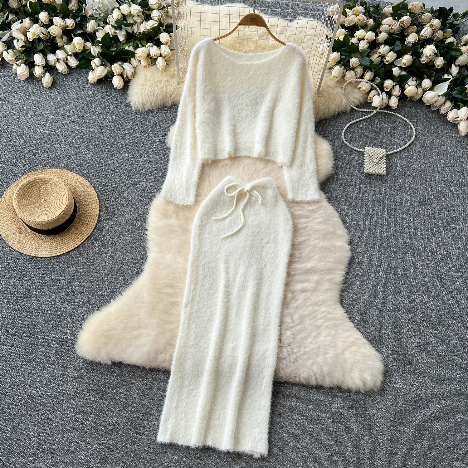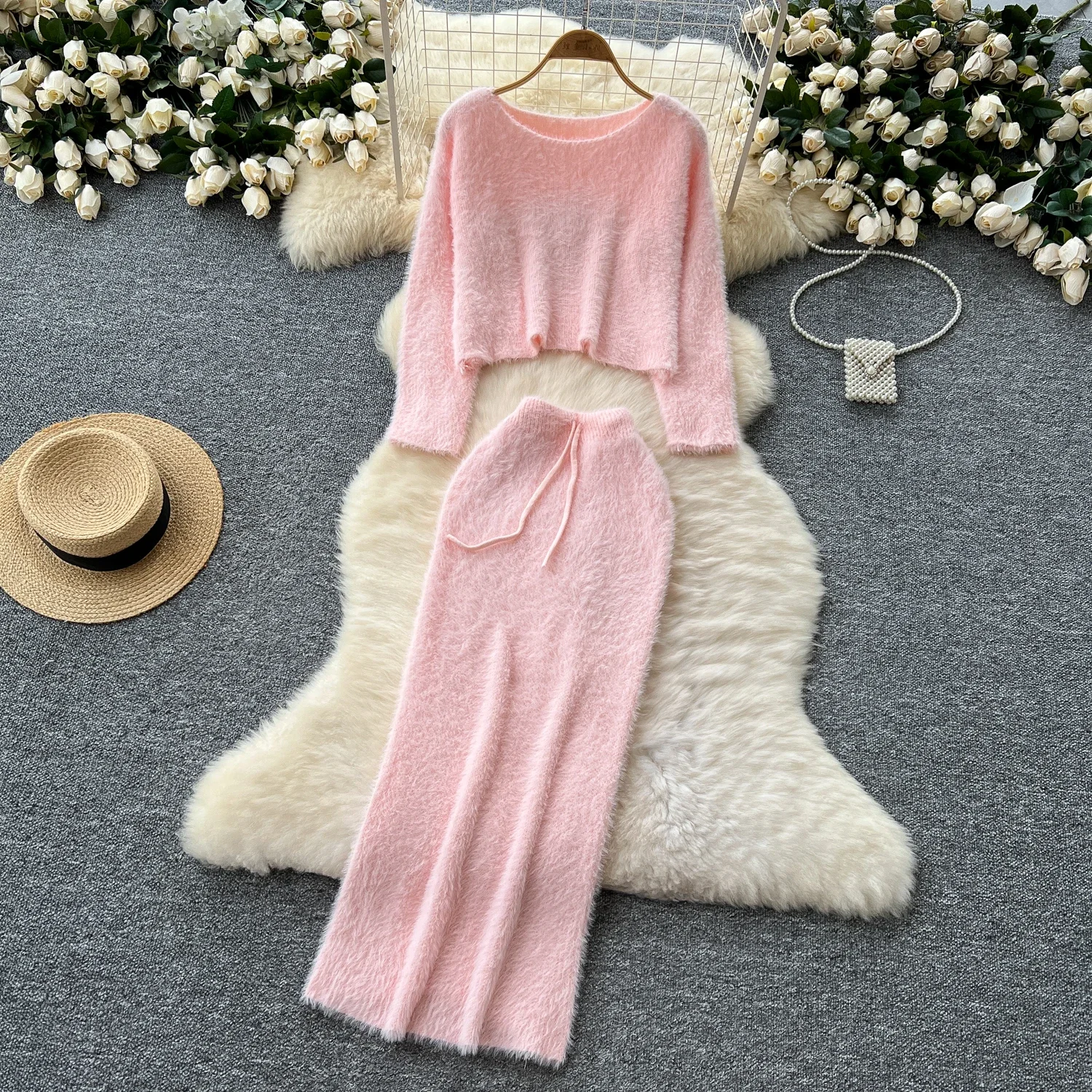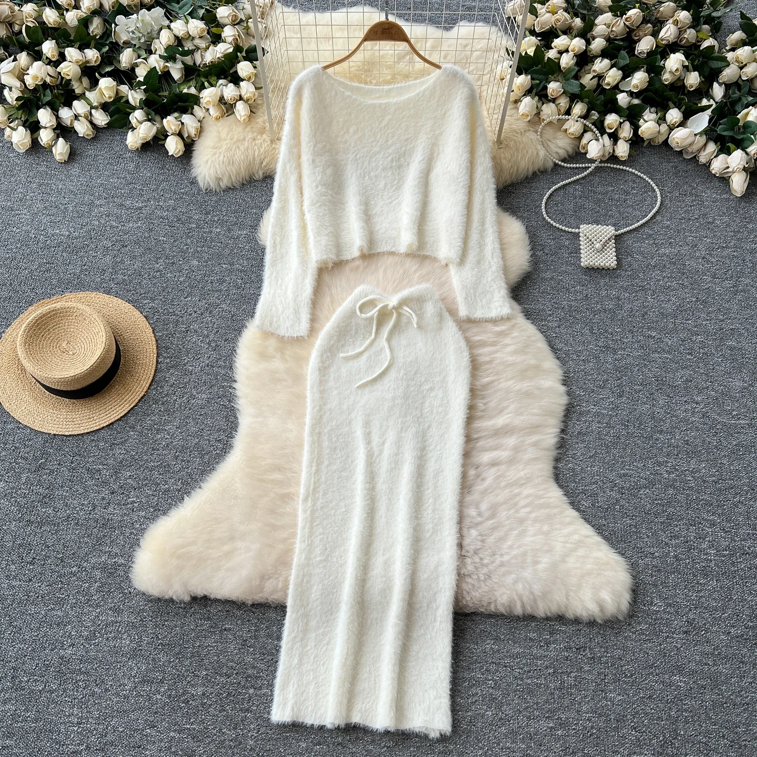 فستان أنيق عتيق من أساسيات متماسكة أنيق على الموضة الكورية الخيالية للخريف والشتاء ملابس نسائية طقم مكون من قطعتين