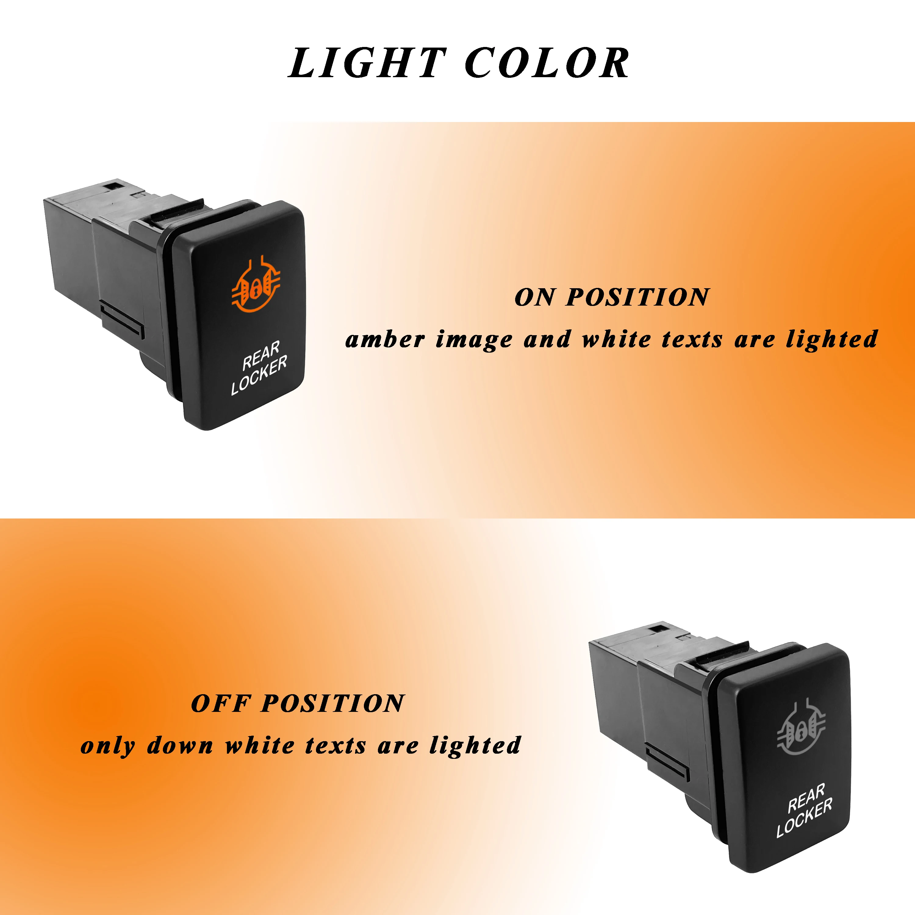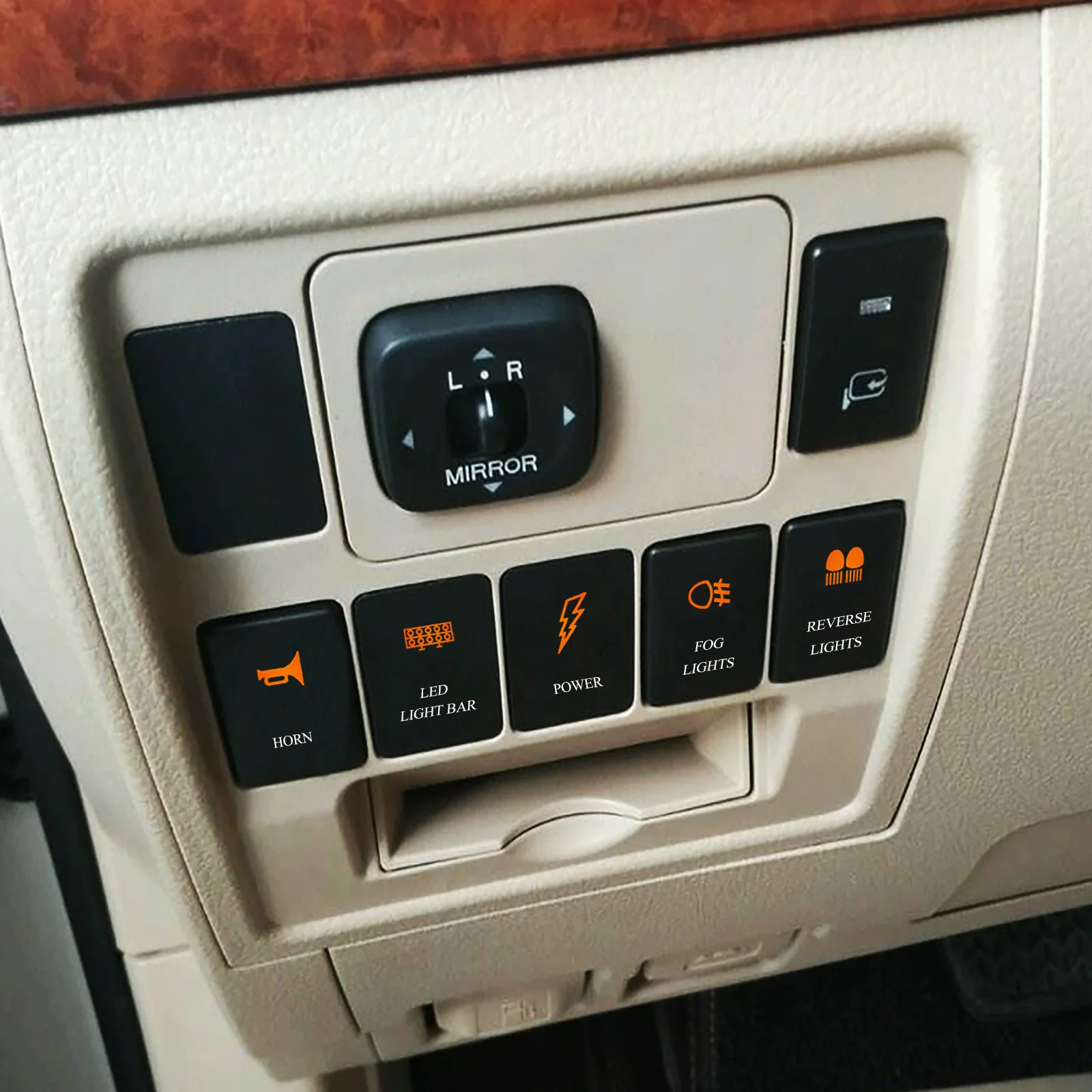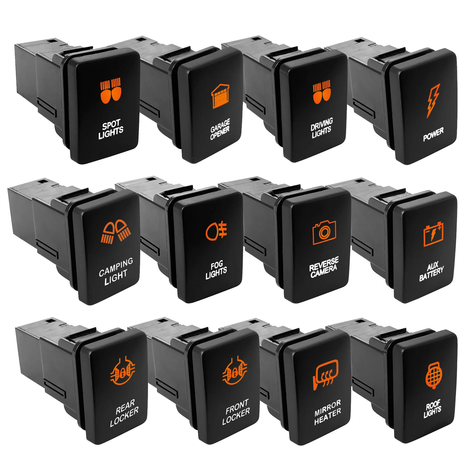 مفتاح الإضاءة الخلفية برتقالي تشغيل وأبيض إيقاف متعدد الرموز لتركيب فتحة لوحة القيادة تويوتا هزاز ذو سطح صلب أسود، أسطورة محفورة بالليزر الصمام: إي...